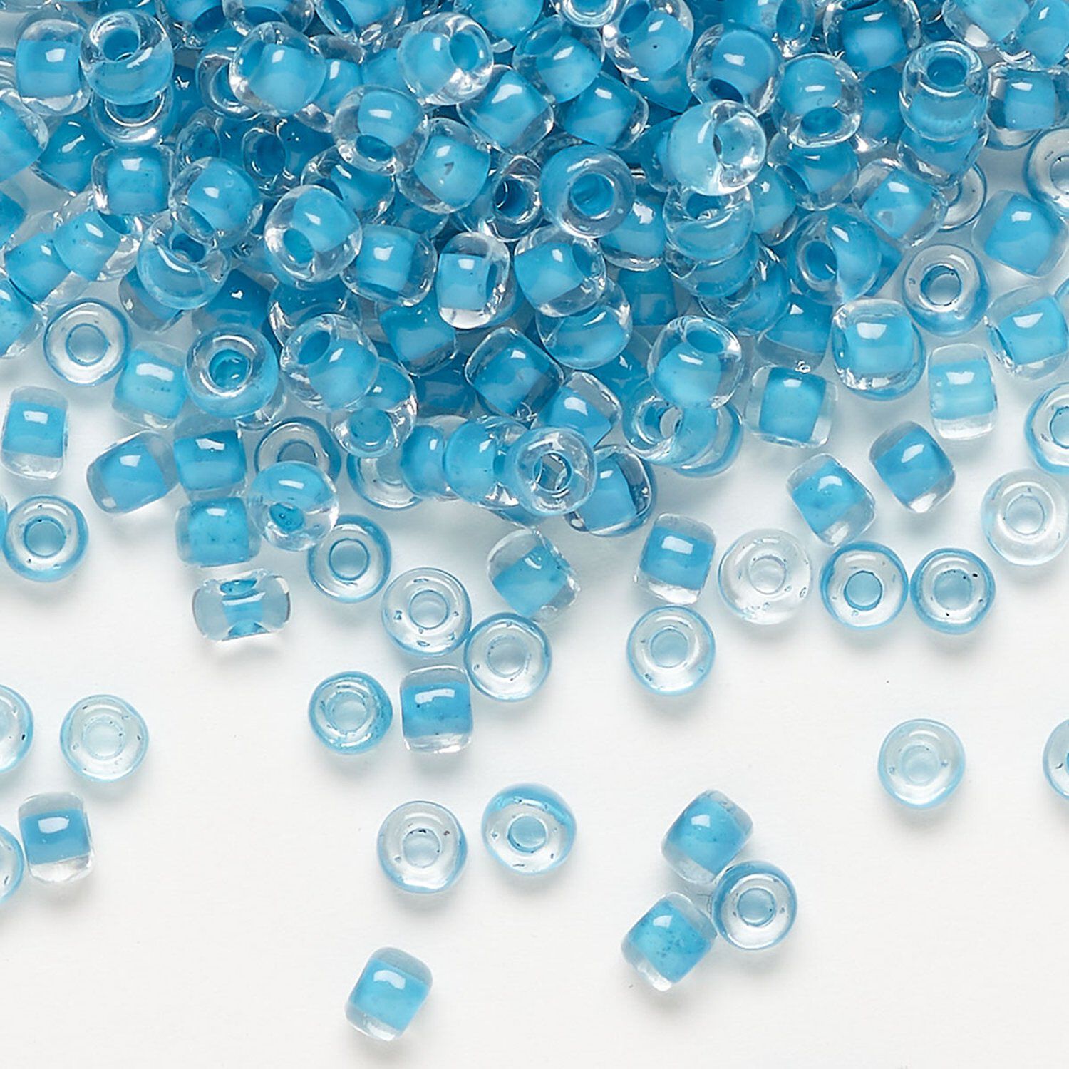 Seed bead, Dyna-Mites™, glass, translucent inside color turquoise blue, #6 round. Sold per 1/2 kilogram pkg.