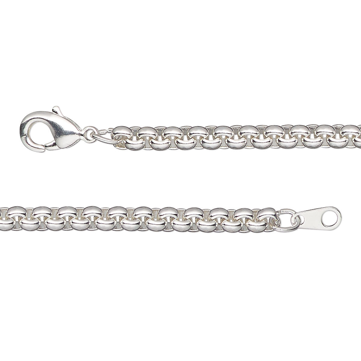 Chain 1pkg1 silver-plated rolo, 3.5mm / lobster claw clasp, brass 36 inch
