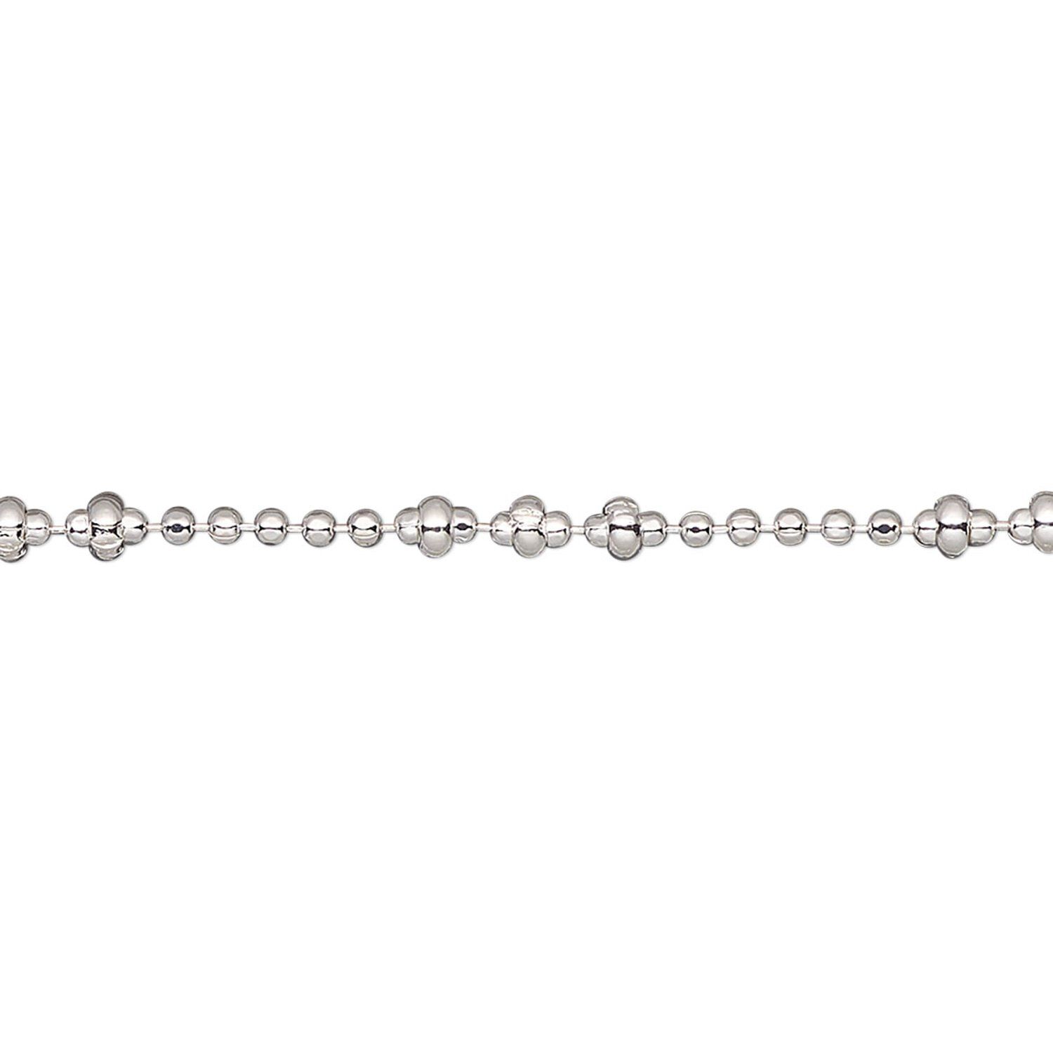 Chain, silver-plated brass, 1.5mm faceted ball and 2.8x1.5mm crimped rondelle. Sold per pkg of 5 feet.