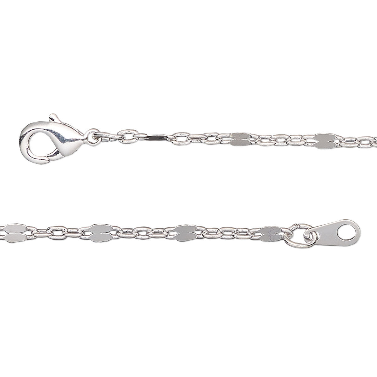 Chain 1pkg1 silver-plated cable / mirror, 1.6mm / 2.4mm / lobster claw clasp, brass 18 inch