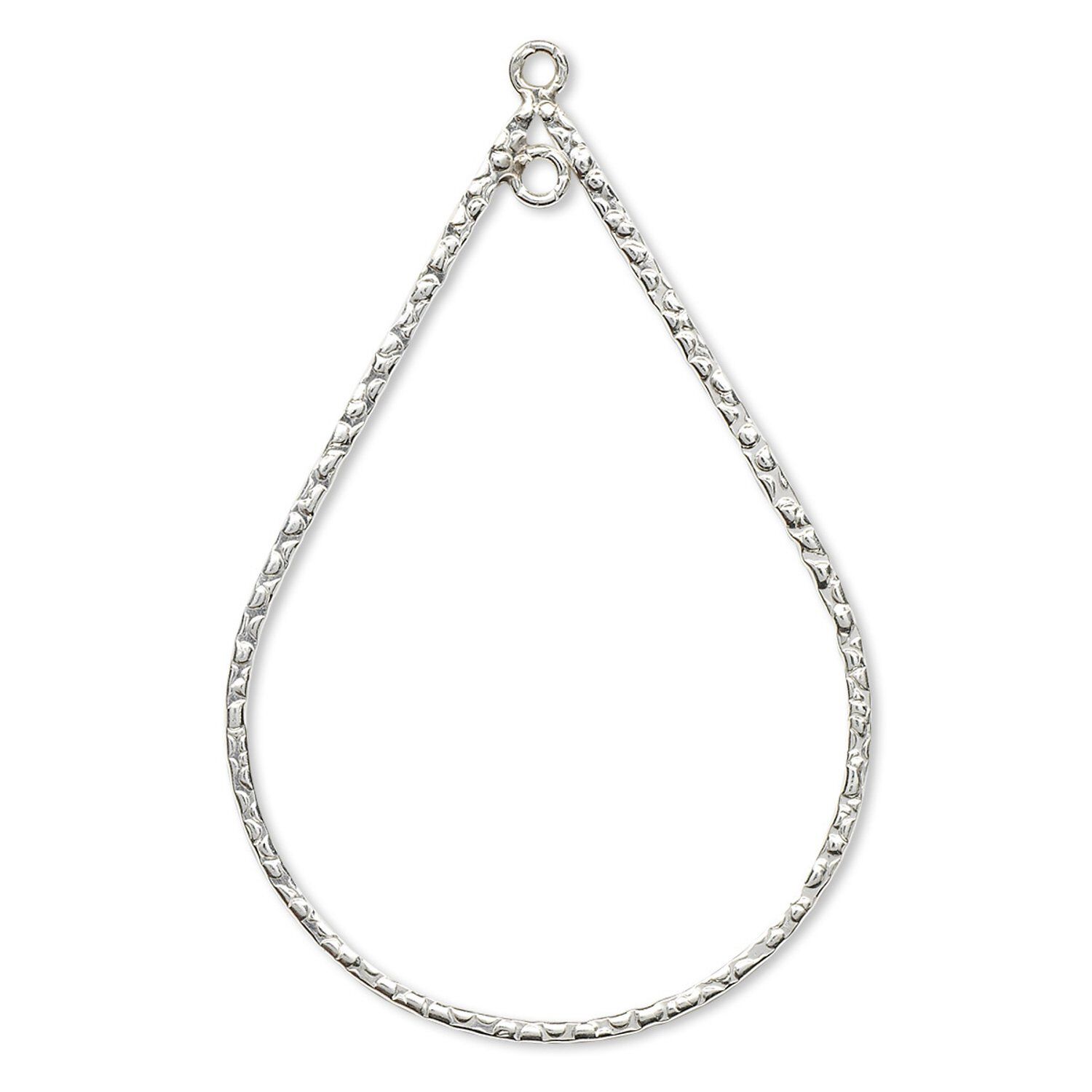 Focal, sterling silver, 40x27mm textured teardrop with 2 loops. Sold individually.