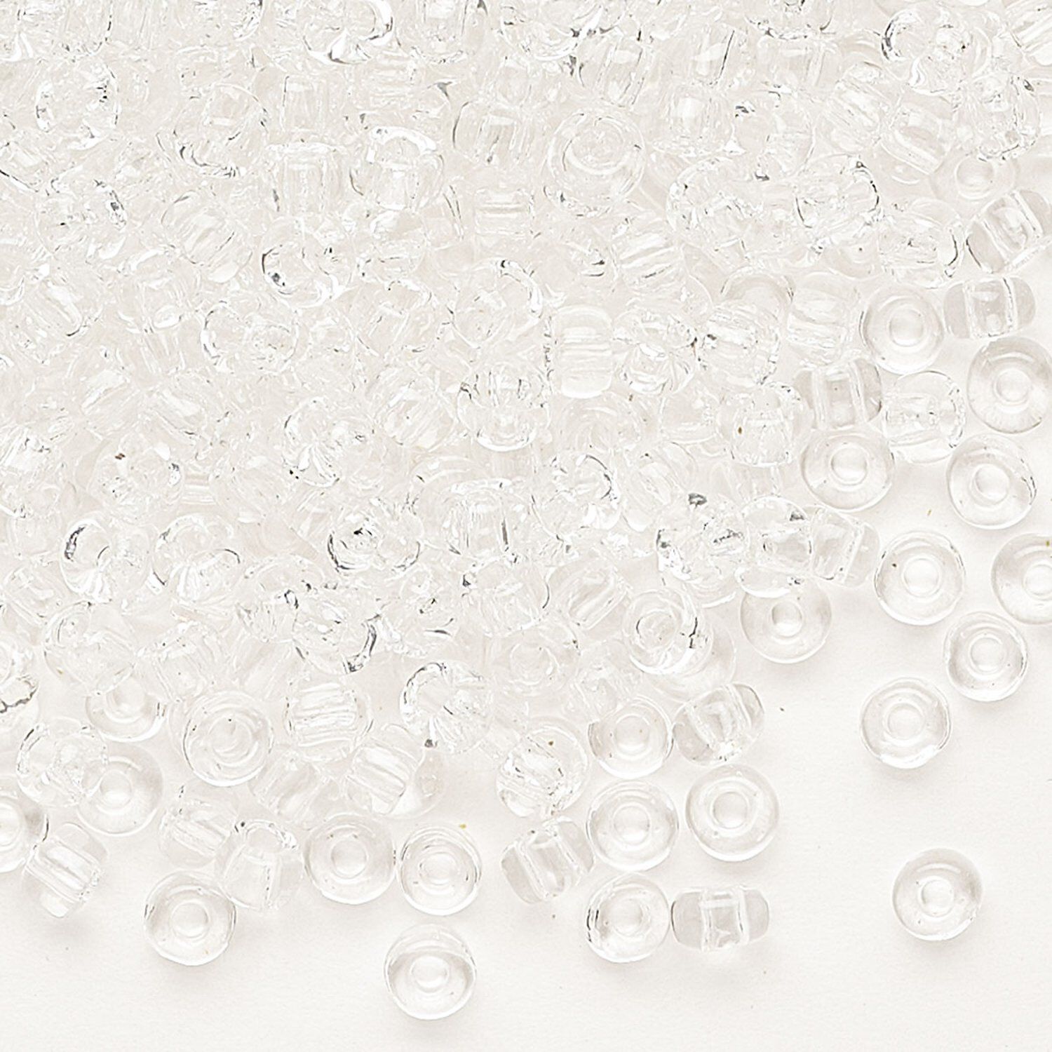 Seed bead, Dyna-Mites™, glass, transparent clear, #6 round. Sold per 40-gram pkg.