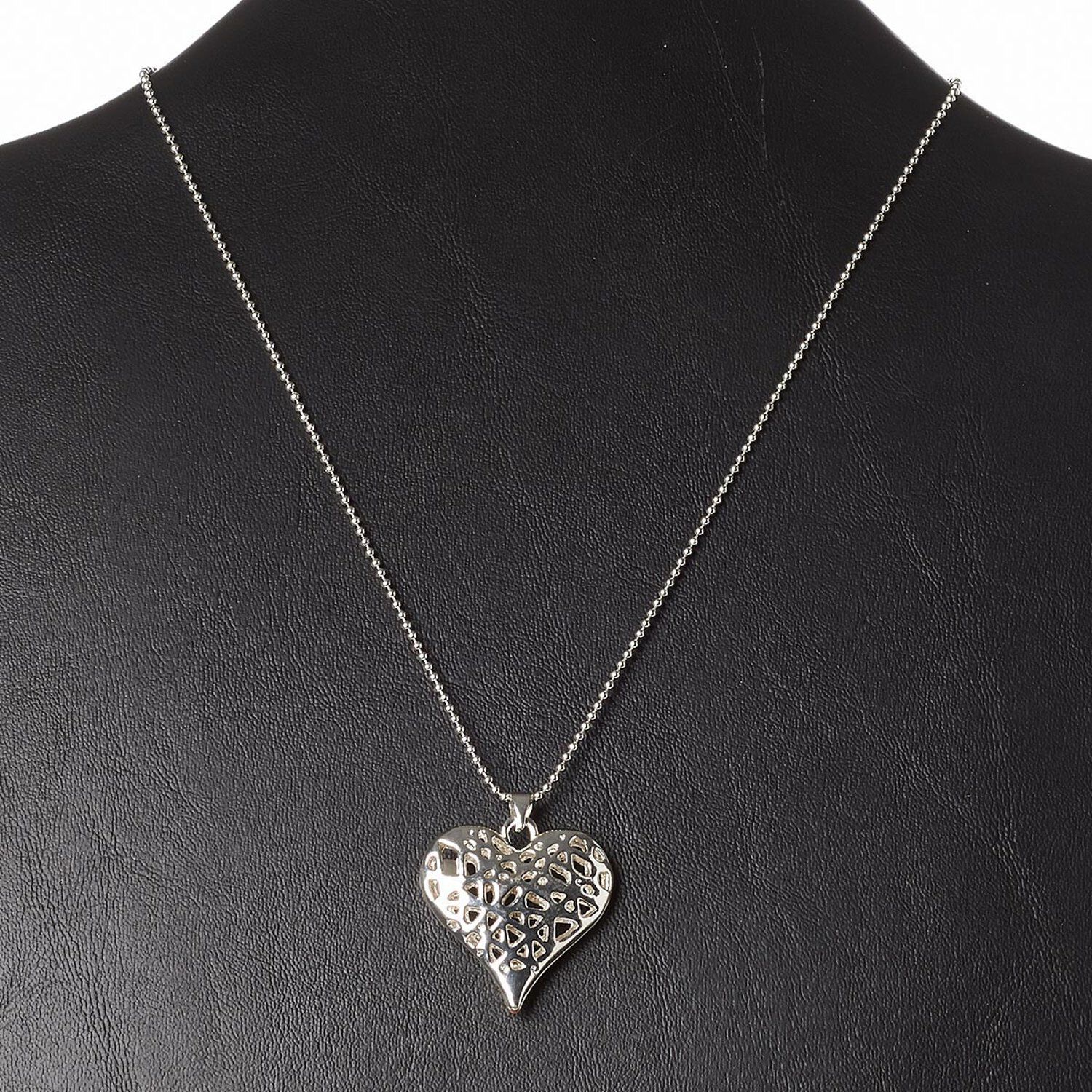 Necklace, silver-plated brass / steel / "pewter" (zinc-based alloy), 31x29mm puffed heart, 16 inches with 2-inch extender chain and lobster claw clasp. Sold individually.