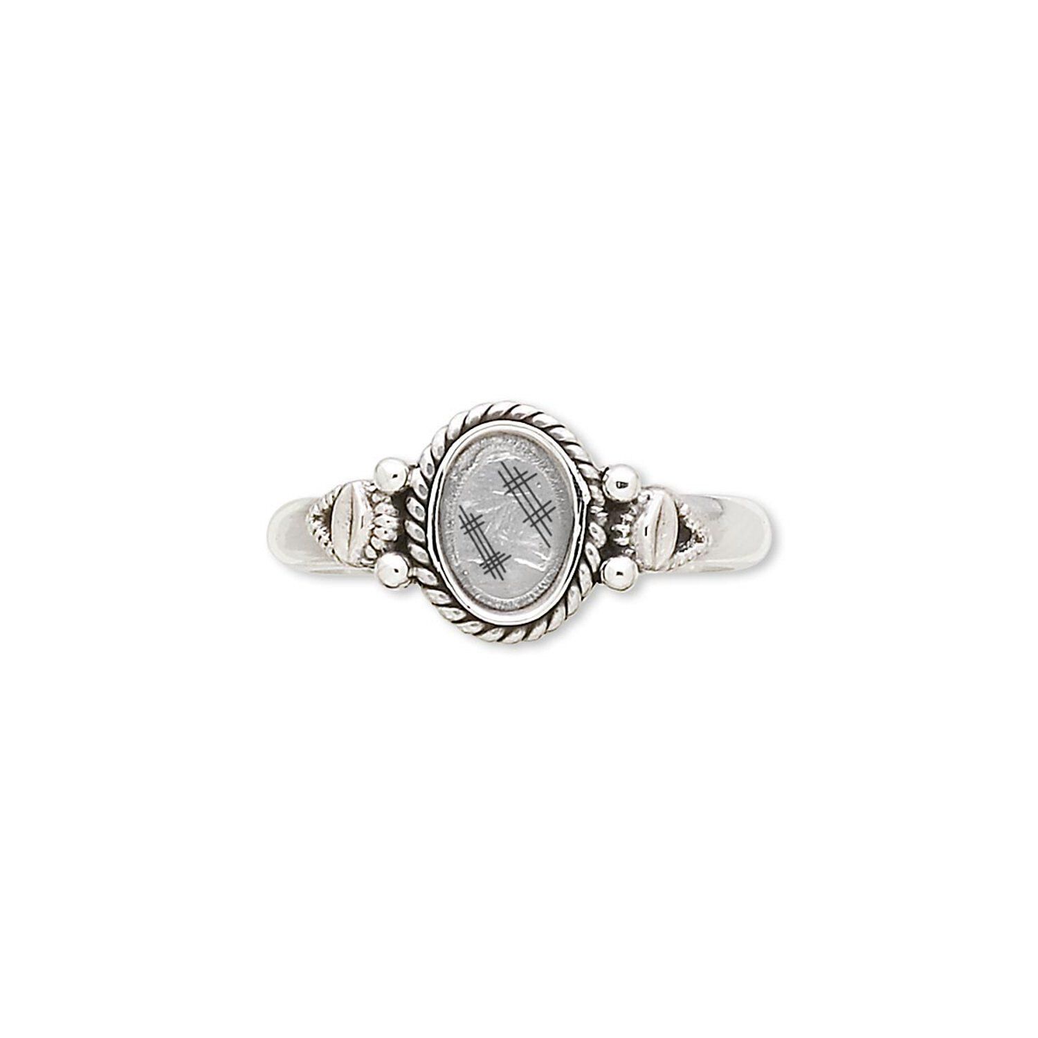 Ring, antiqued sterling silver, 3mm wide with fancy twisted wire design and 7x5mm oval setting, size 7. Sold individually.