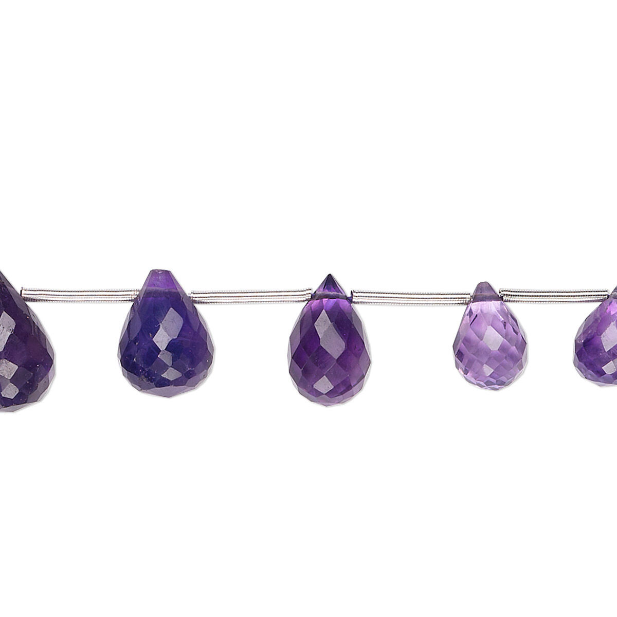 Amethyst 1pkg19, hand-cut top-drilled faceted briolette bead natural graduated 8x5mm-12x8mm