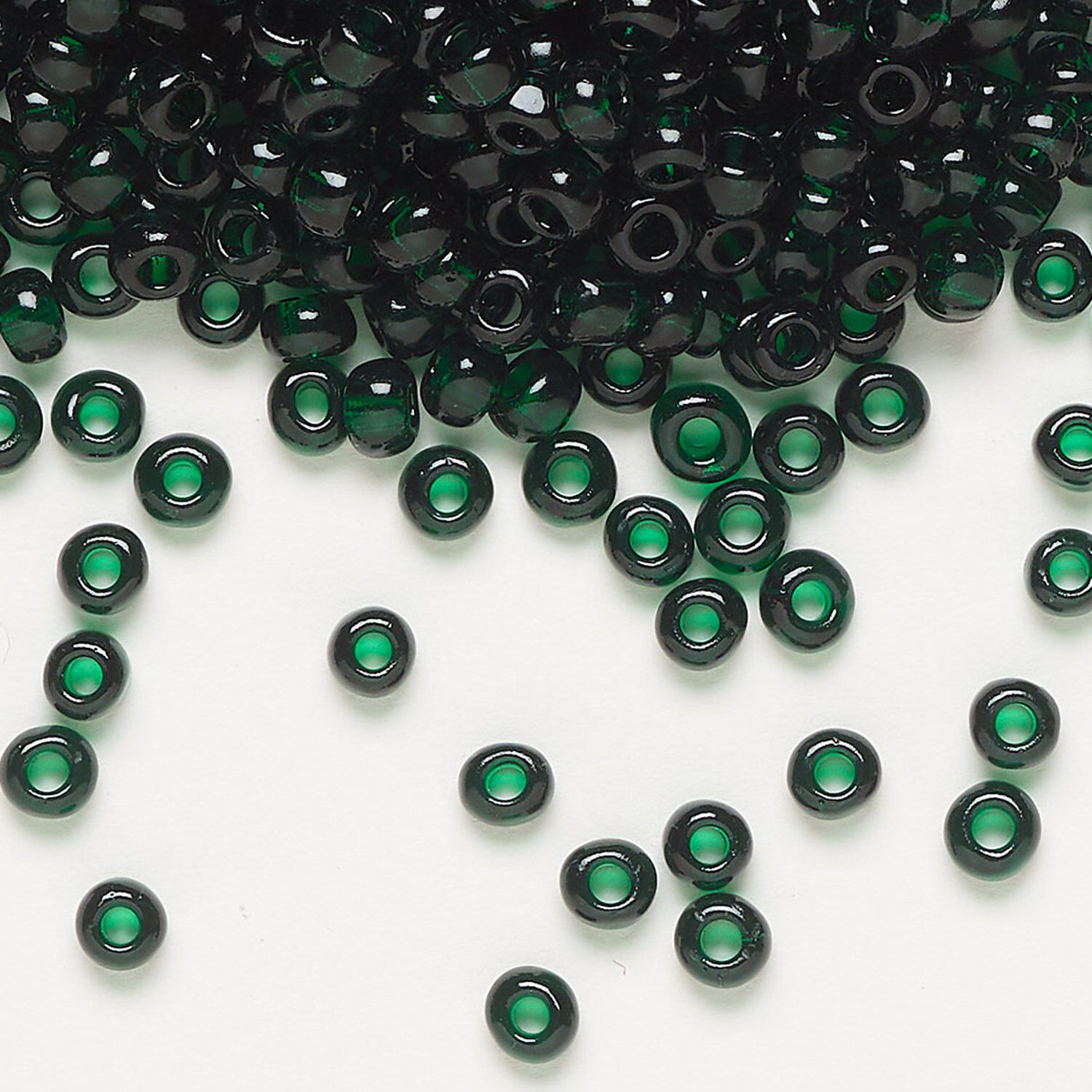 Seed bead, Dyna-Mites™, glass, transparent dark green, #6 round. Sold per 40-gram pkg.