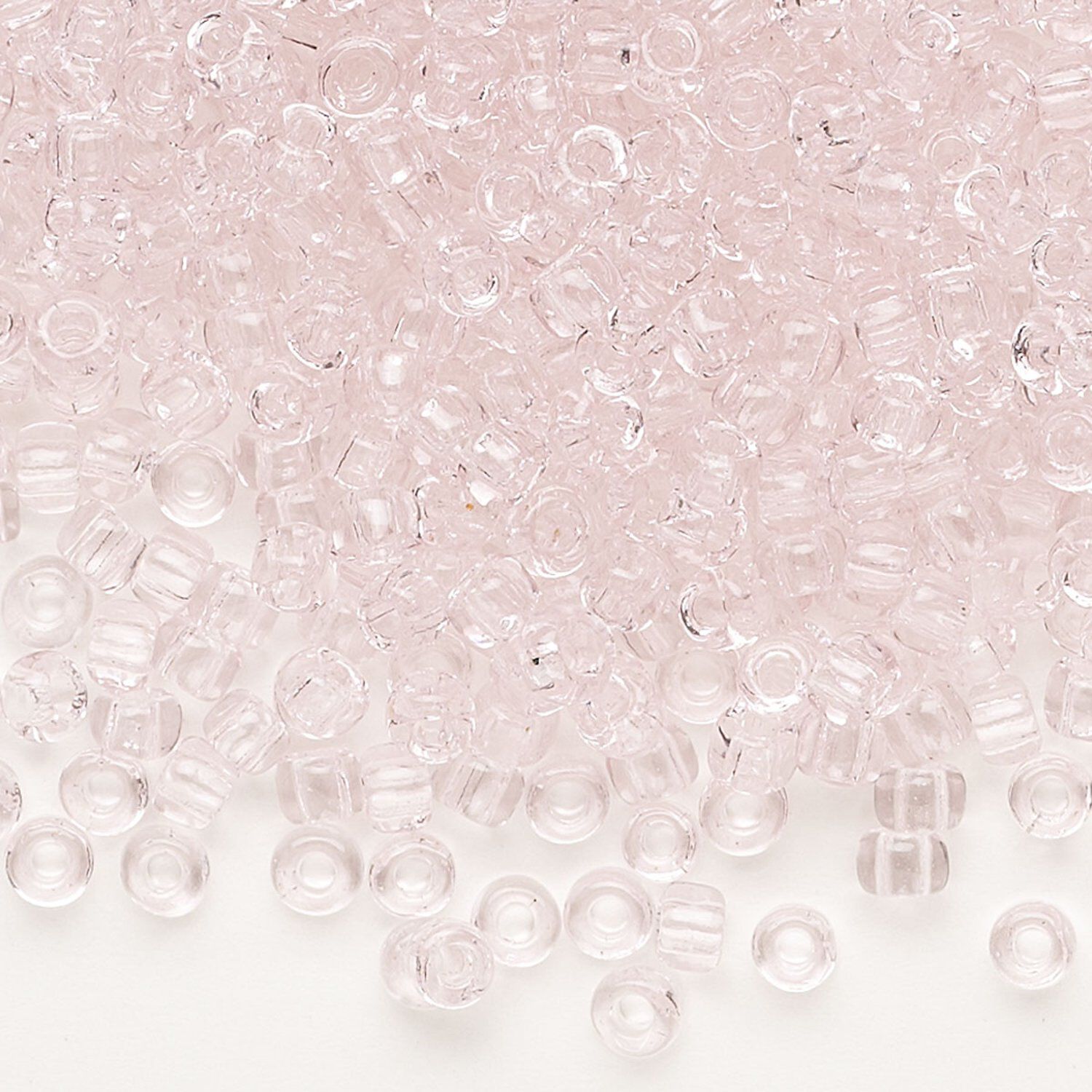 Seed bead, Dyna-Mites™, glass, transparent light pink, #6 round. Sold per 1/2 kilogram pkg.