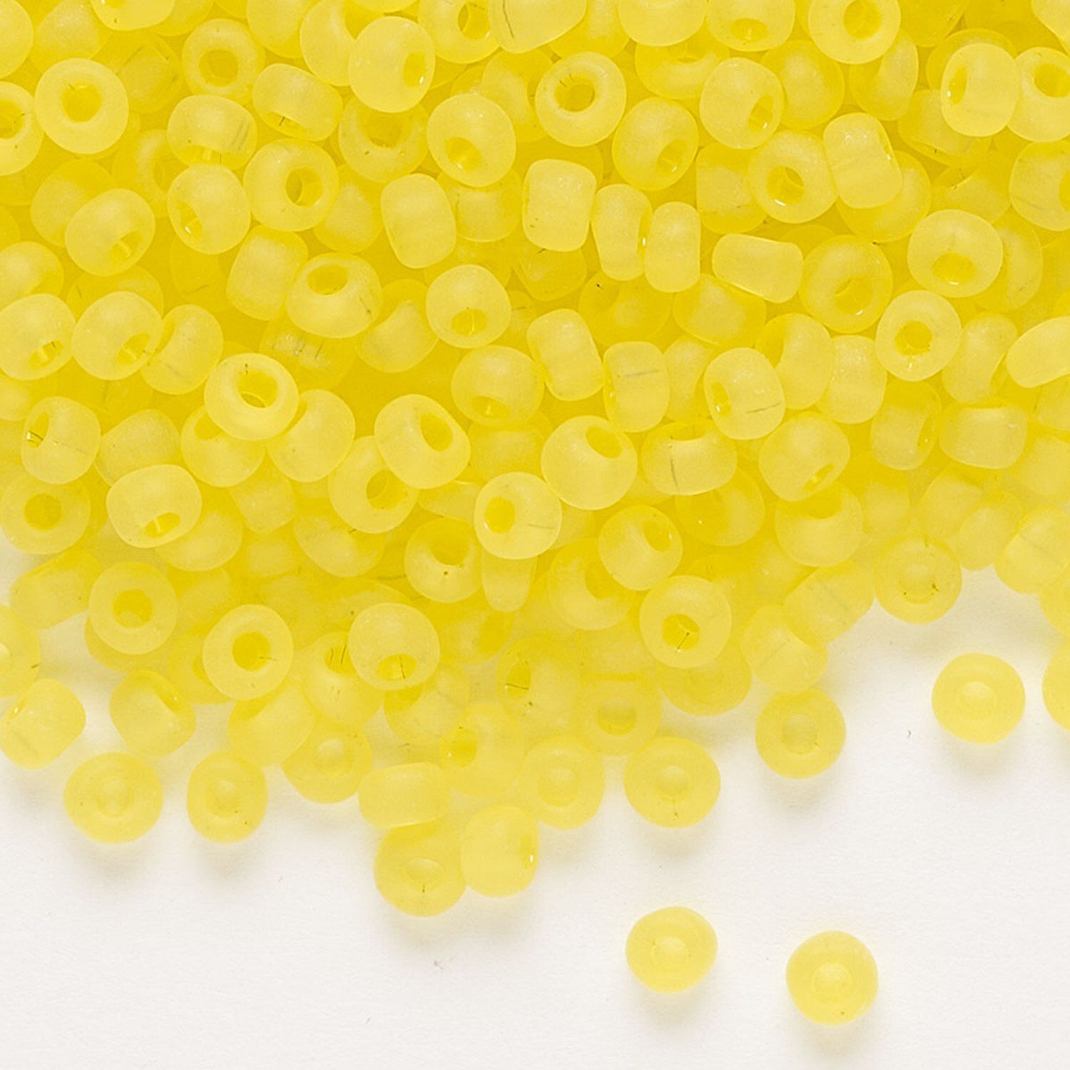 Seed bead, Dyna-Mites™, glass, transparent matte yellow, #6 round. Sold per 40-gram pkg.