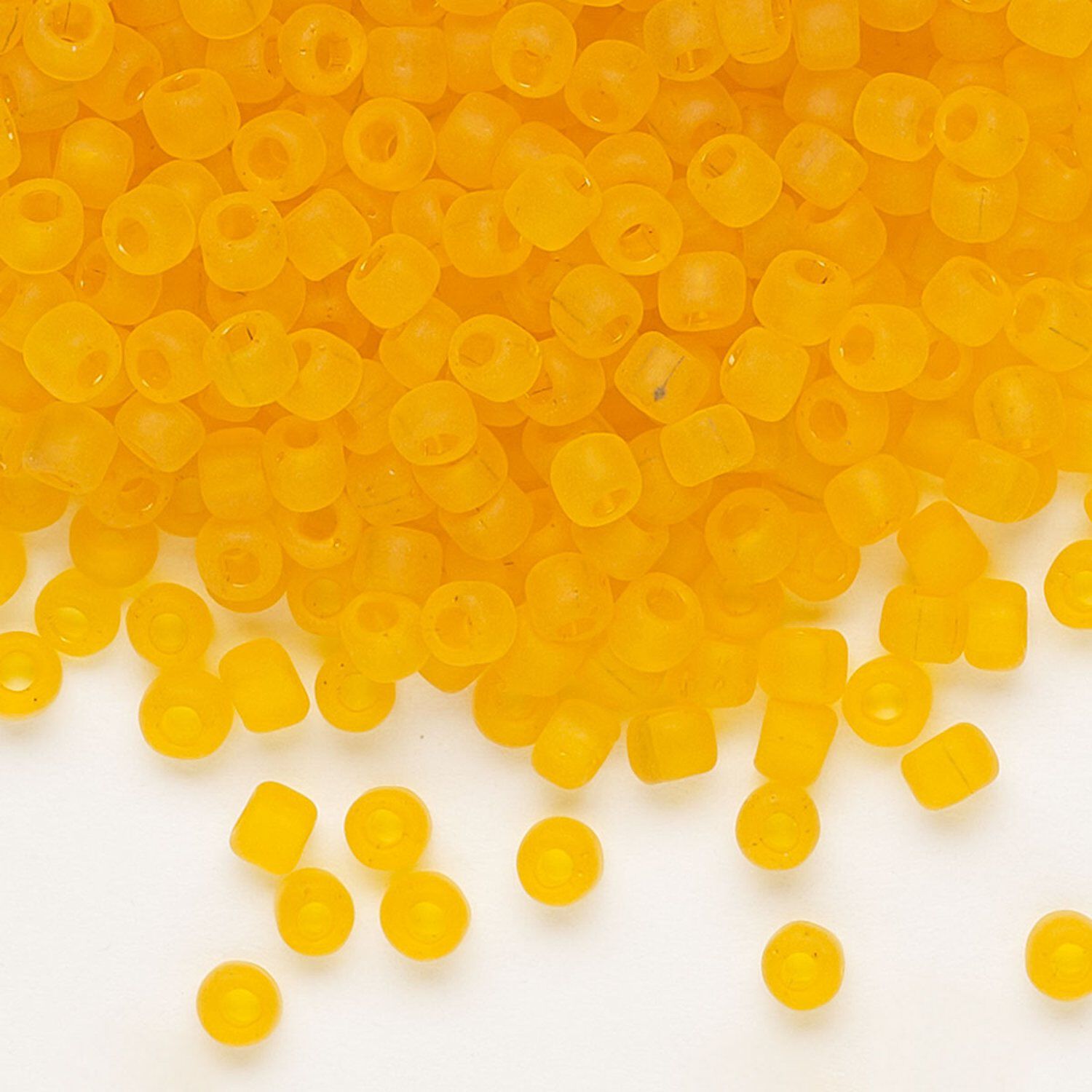 Seed bead, Dyna-Mites™, glass, transparent matte orange, #6 round. Sold per 40-gram pkg.