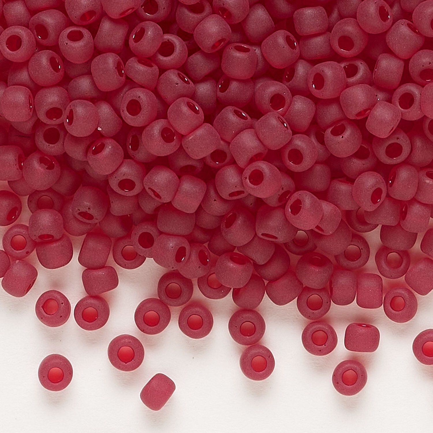 Seed bead, Dyna-Mites™, glass, transparent matte ruby red, #6 round. Sold per 1/2 kilogram pkg.