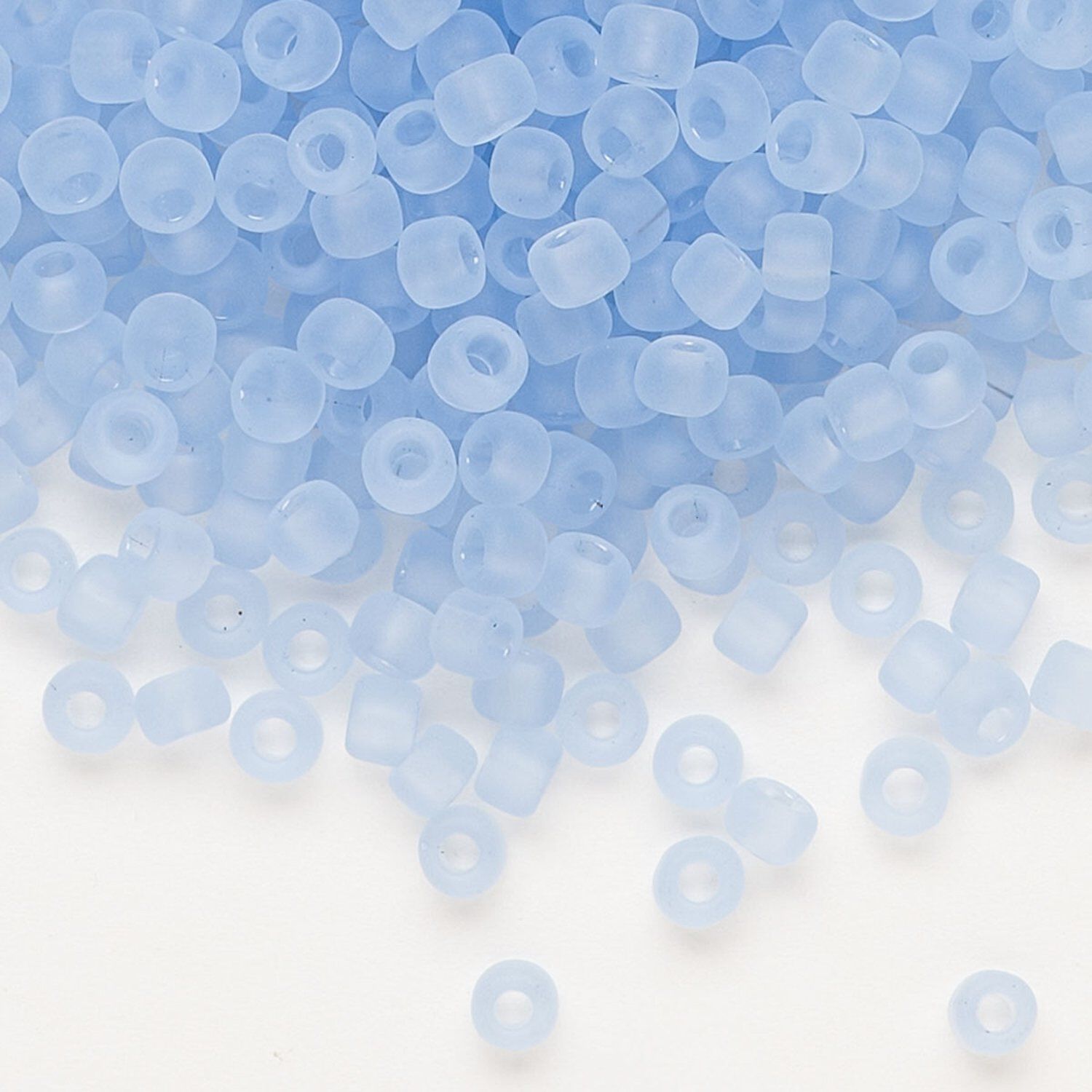 Seed bead, Dyna-Mites™, glass, transparent matte pale blue, #6 round. Sold per 1/2 kilogram pkg.