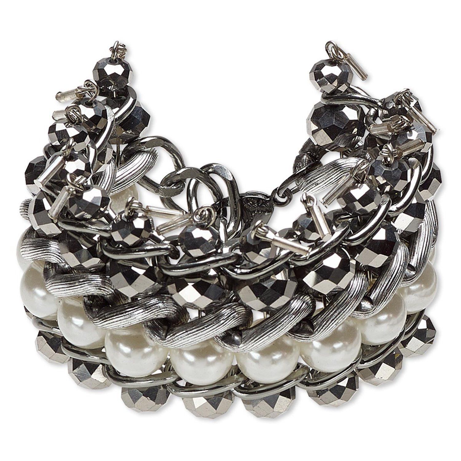 Bracelet features a contrasting blend of chain, acrylic pearls and faceted rounds. Colors, shapes and sizes may vary in each lot.