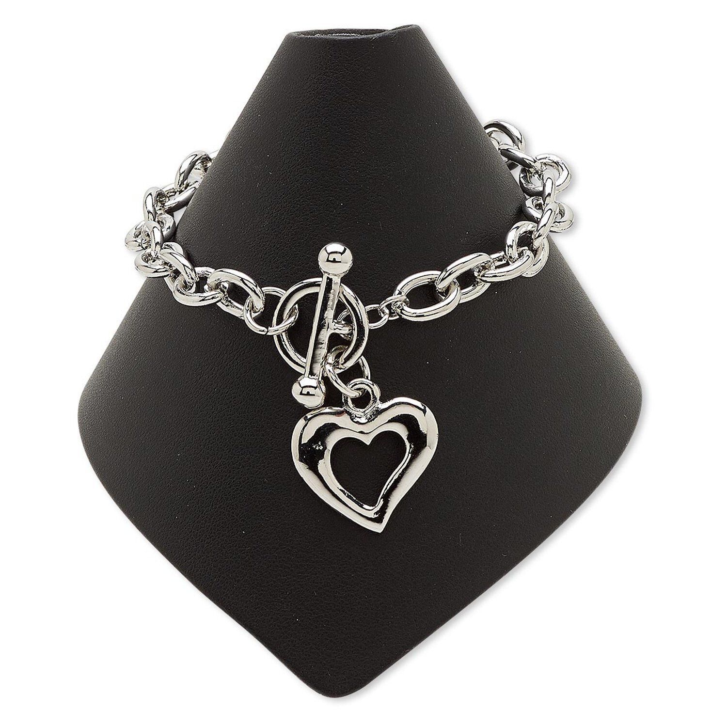 Bracelet features and open heart charm and toggle clasp. Colors, shapes and sizes may vary in each lot.
