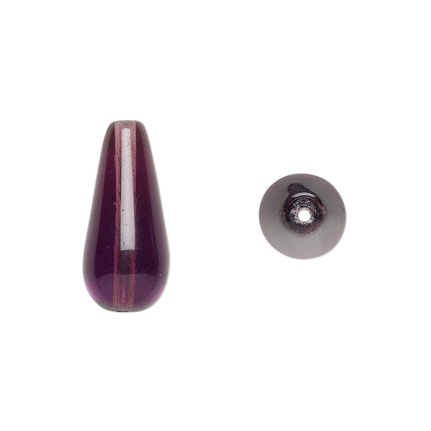 Bead, Czech pressed glass, amethyst purple, 20x9.5mm teardrop. Sold per 15-1/2" to 16" strand, approximately 20 beads.