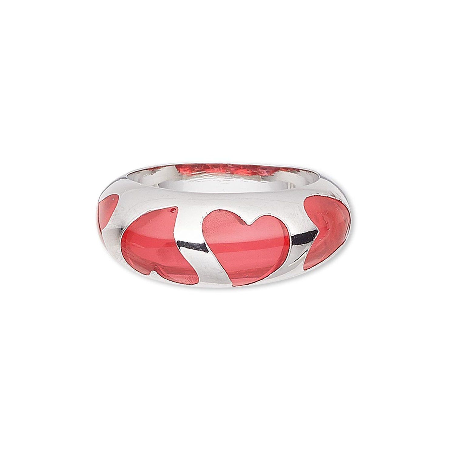 Ring, epoxy and imitation rhodium-finished brass, red, 9mm wide with heart cutout design, size 8. Sold individually.