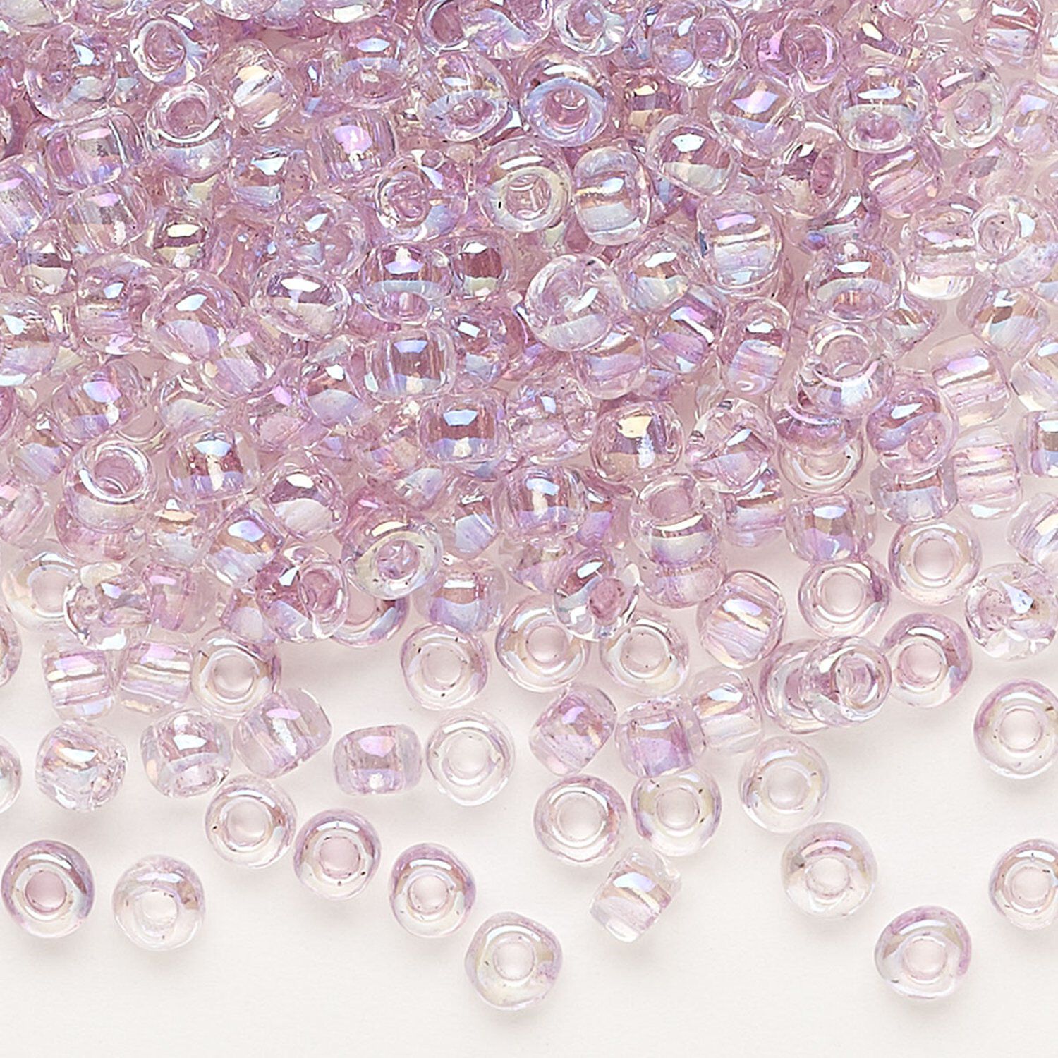 Seed bead, Dyna-Mites™, glass, transparent rainbow inside color lavender, #6 round. Sold per 1/2 kilogram pkg.