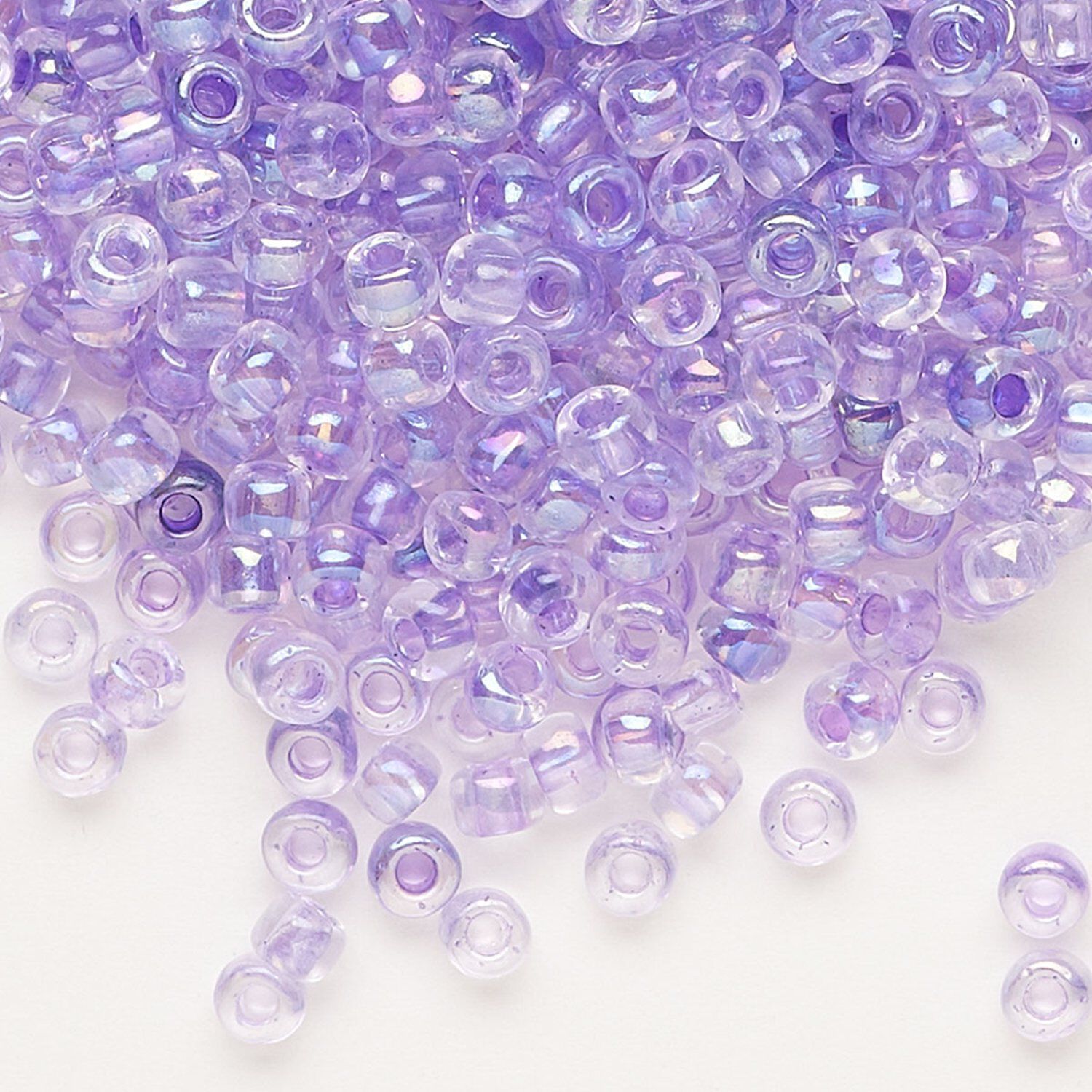Seed bead, Dyna-Mites™, glass, transparent rainbow inside color purple, #6 round. Sold per 1/2 kilogram pkg.