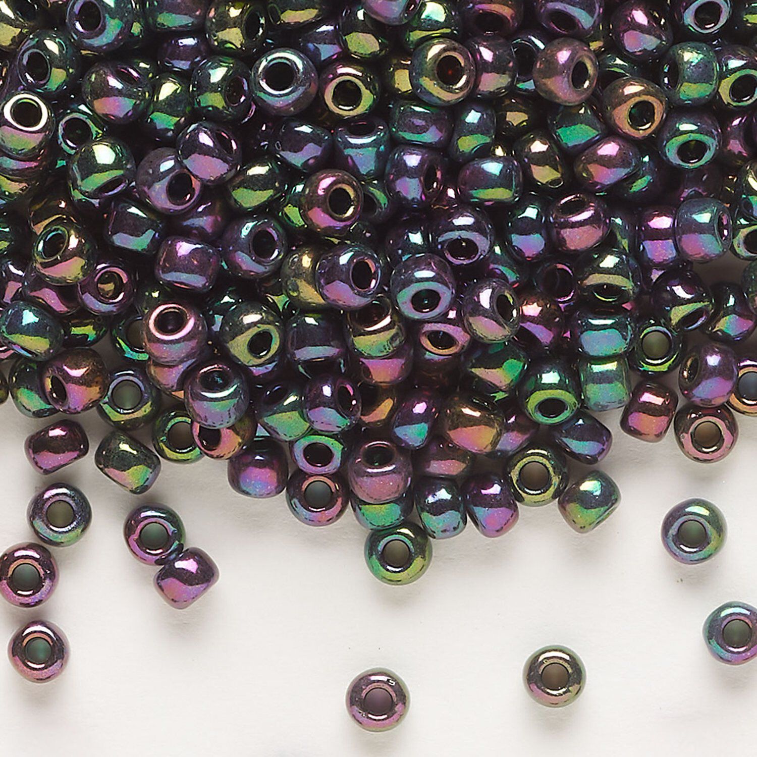 Seed bead, Dyna-Mites™, glass, opaque iris multi-rainbow, #6 round. Sold per 1/2 kilogram pkg.