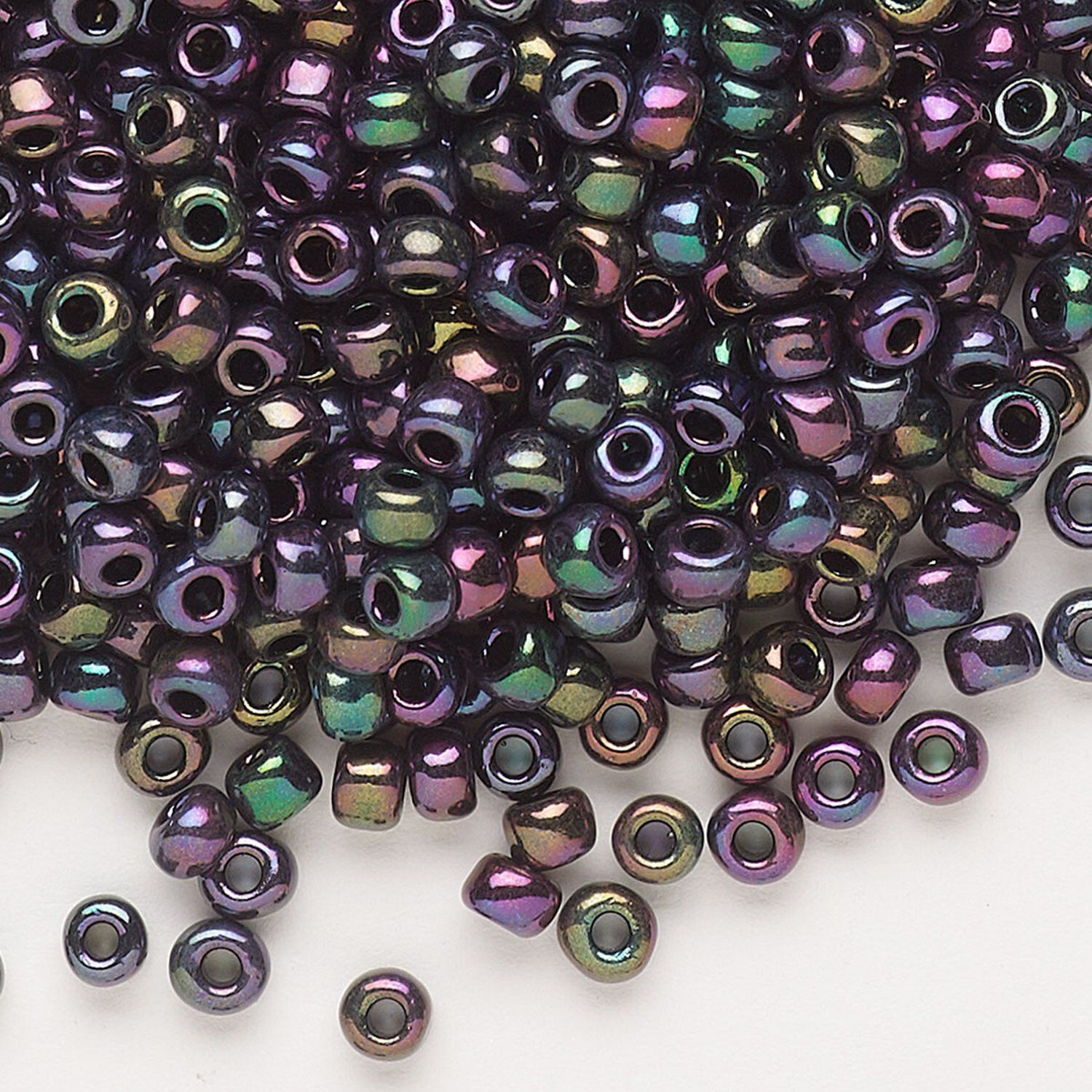 Seed bead, Dyna-Mites™, glass, opaque iris peacock, #6 round. Sold per 1/2 kilogram pkg.