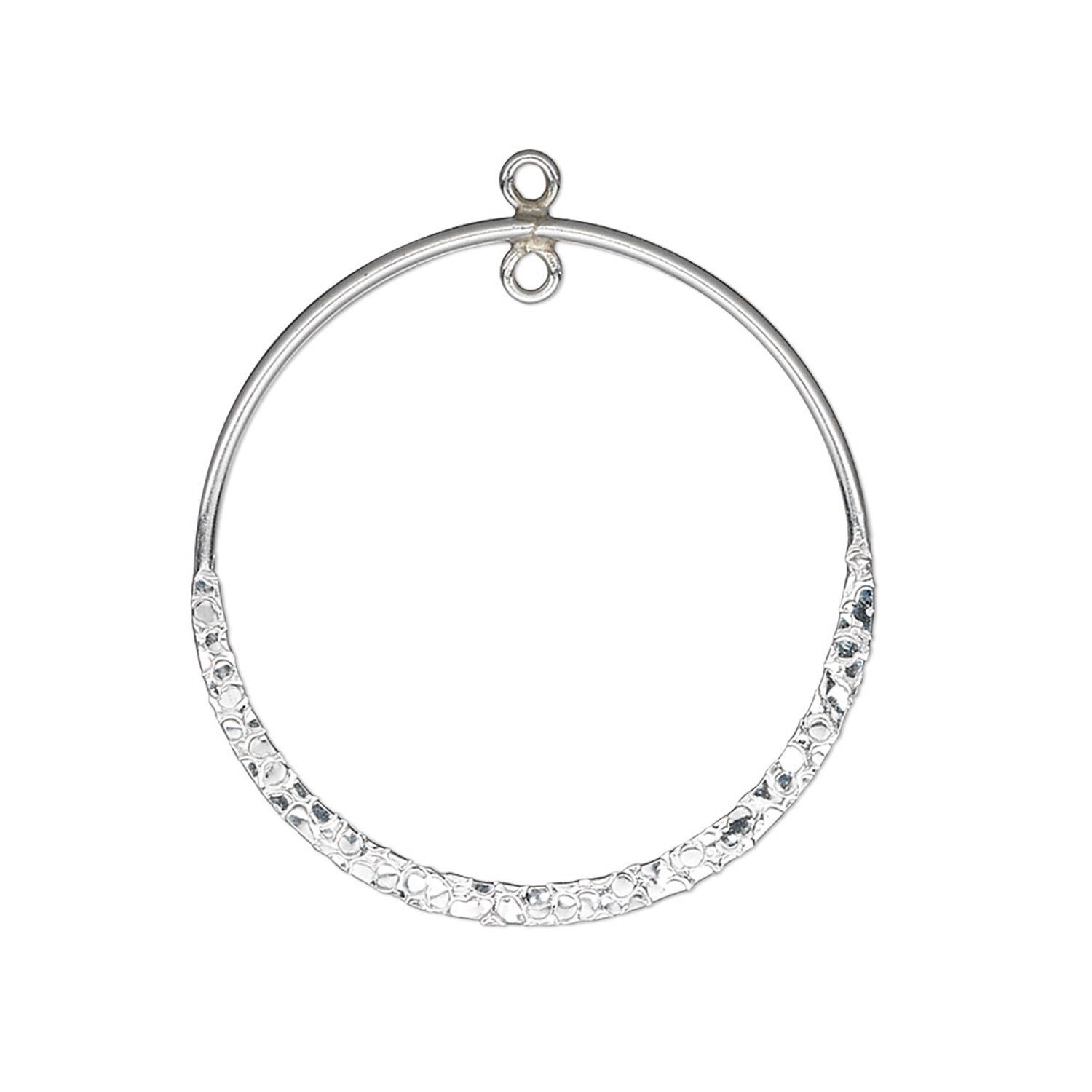Drop, sterling silver, 27mm double-sided hammered flat open round with loop. Sold individually.
