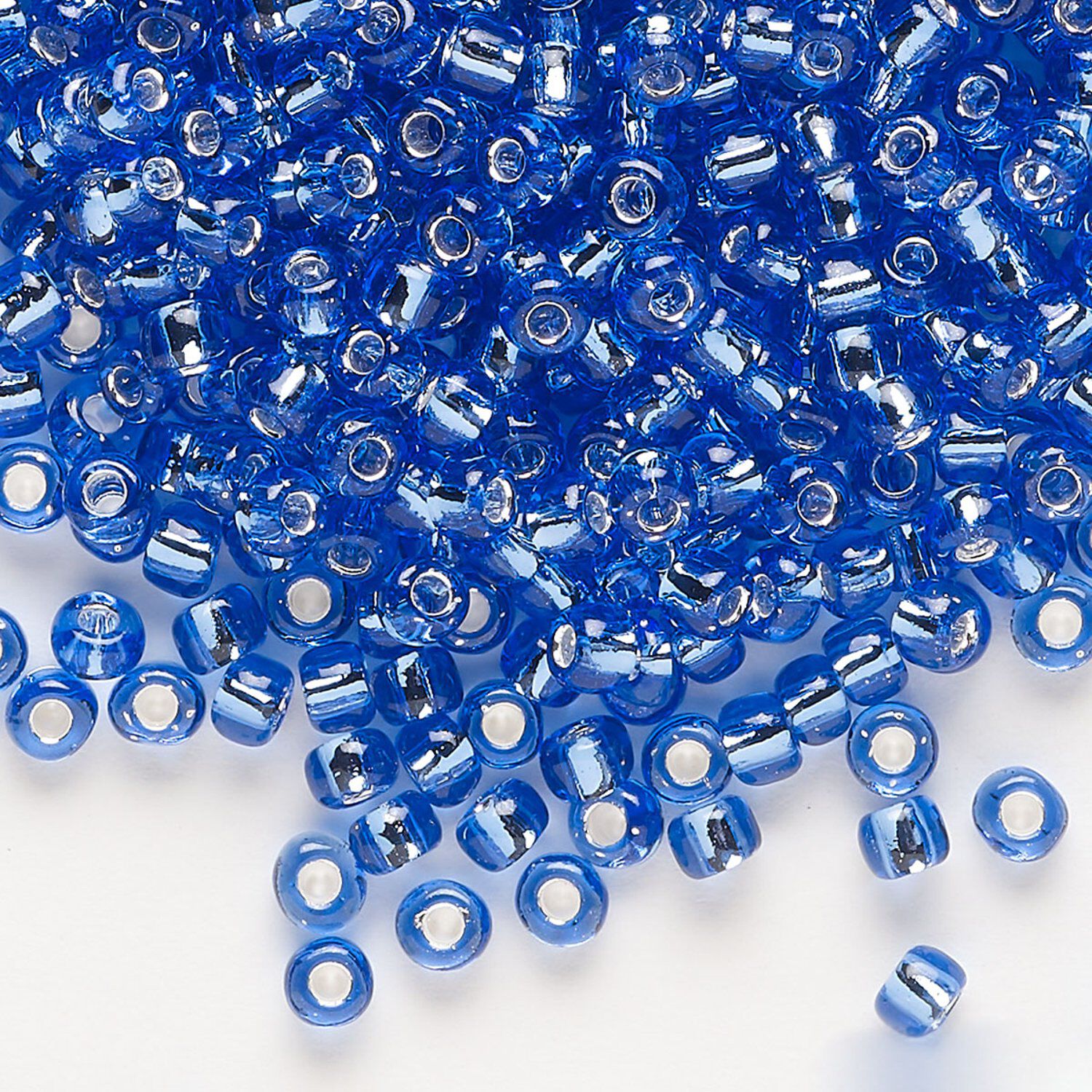 Seed bead, Dyna-Mites™, glass, transparent silver-lined light blue, #6 round. Sold per 1/2 kilogram pkg.