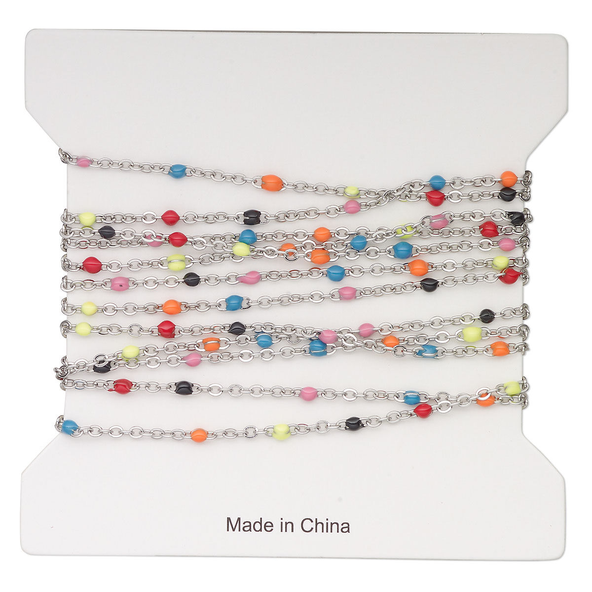 Chain 1pkg1 cable, 1.7mm flat / 2mm ball, stainless steel / multicolored enamel 5 foot unfinished