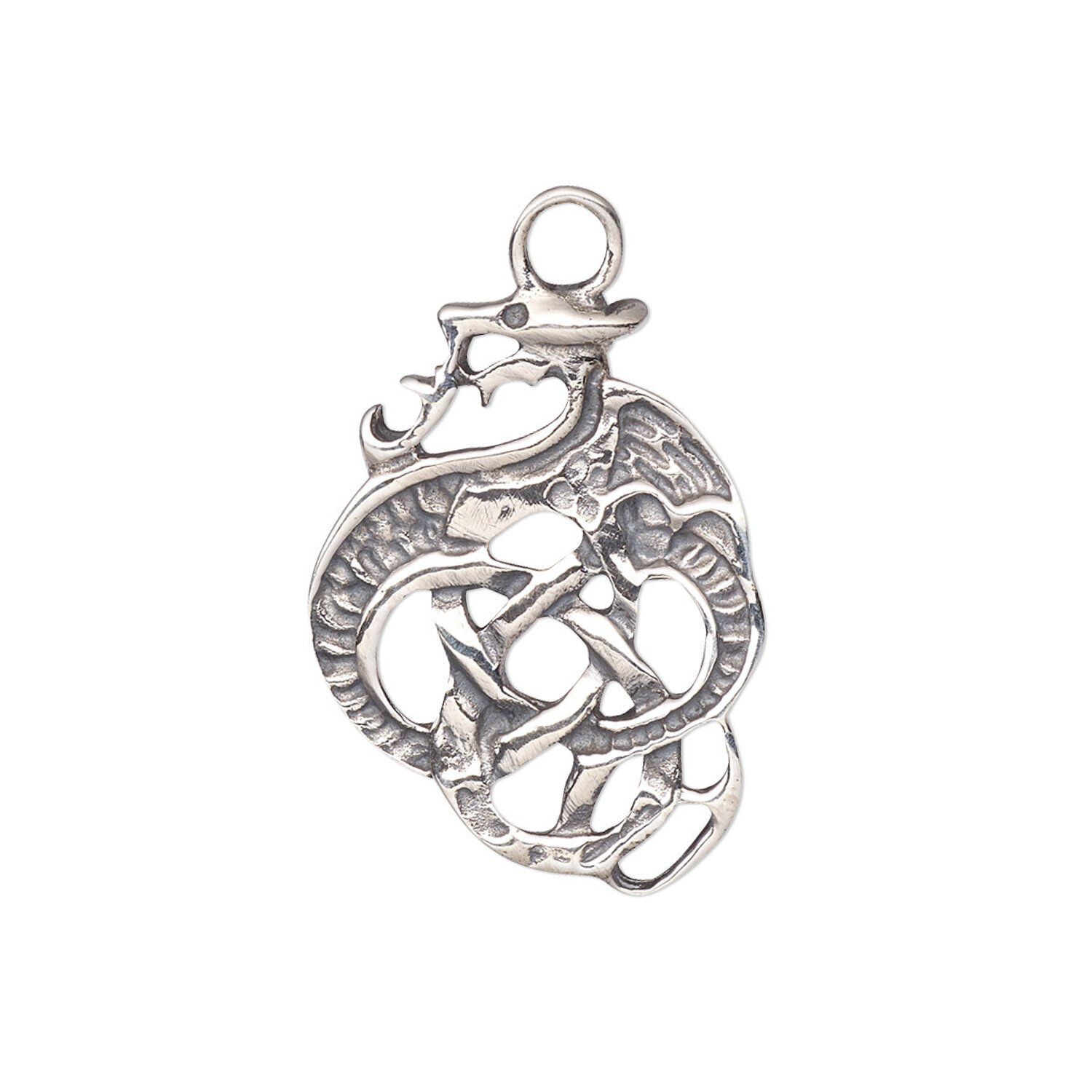 Drop, antiqued sterling silver, 25x18.5mm Celtic dragon. Sold individually.