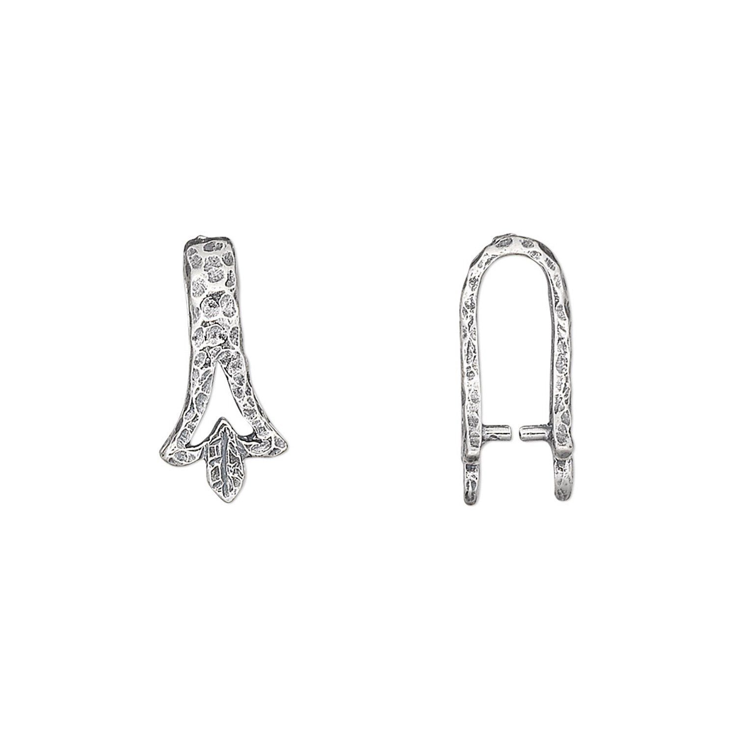 Bail, JBB Findings, ice-pick, antiqued sterling silver, 15x7mm leaf, 9mm grip length. Sold individually.
