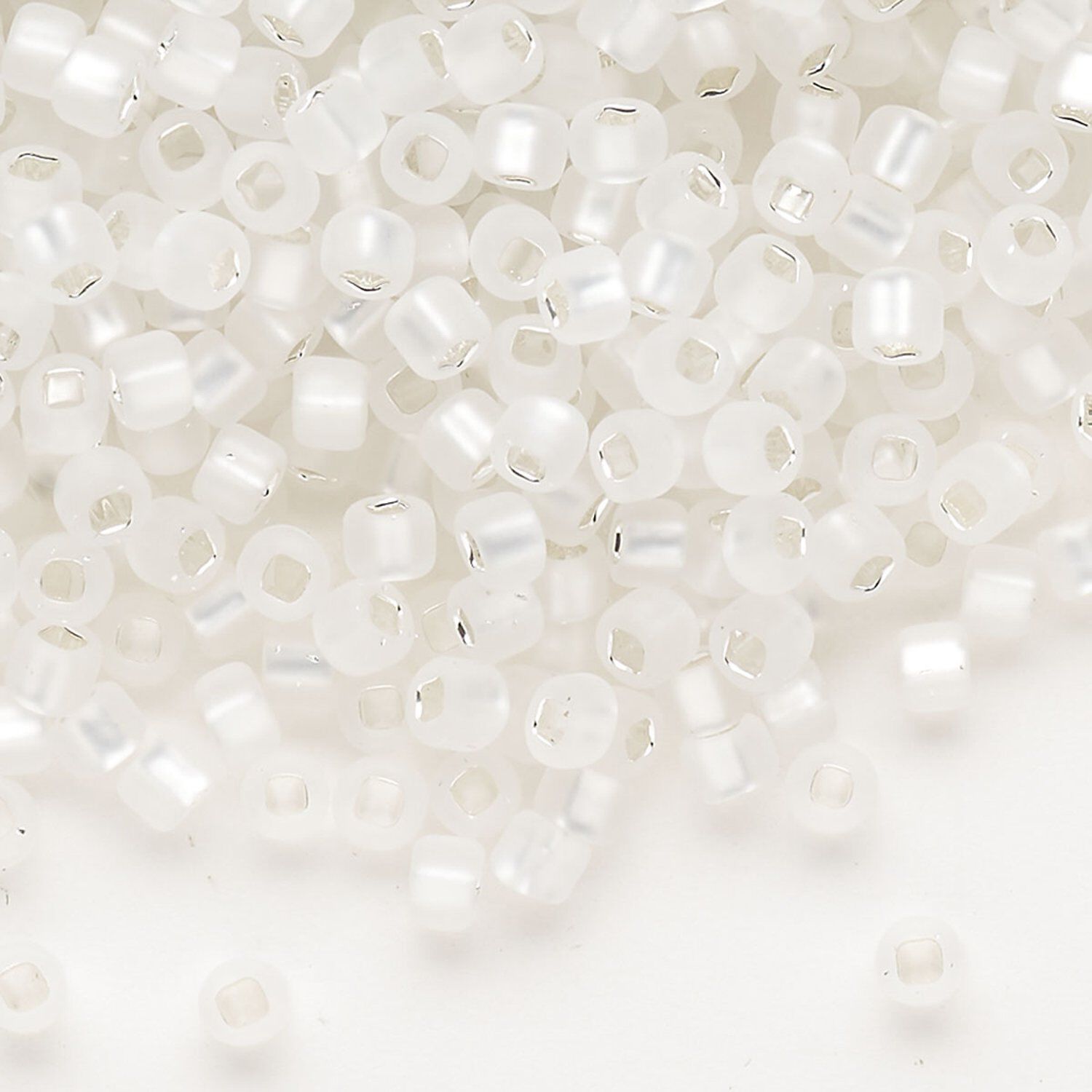 Seed bead, Dyna-Mites™, glass, silver-lined translucent matte clear, #6 round with square hole. Sold per 1/2 kilogram pkg.