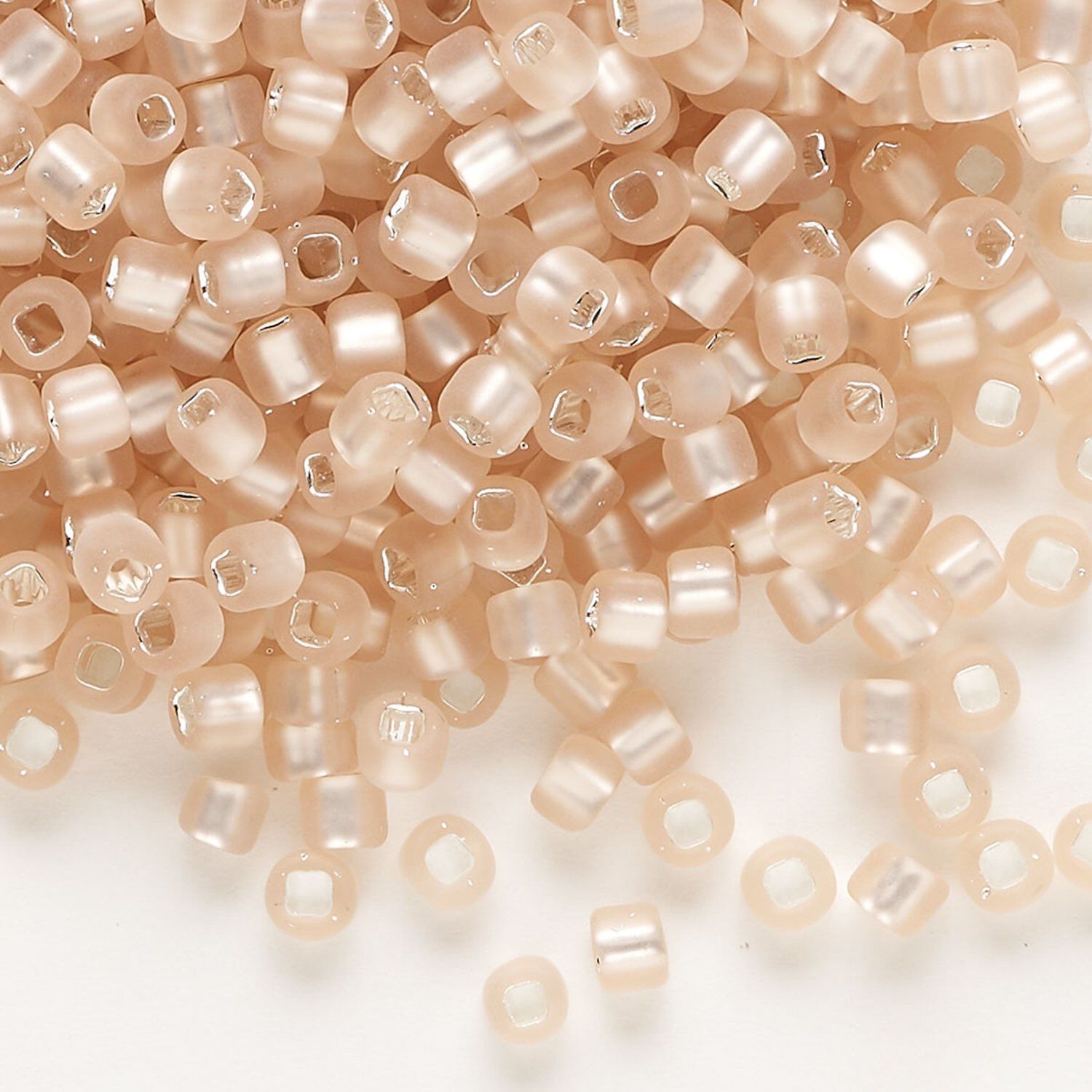 Seed bead, Dyna-Mites™, glass, silver-lined translucent matte light pink, #6 round with square hole. Sold per 40-gram pkg.