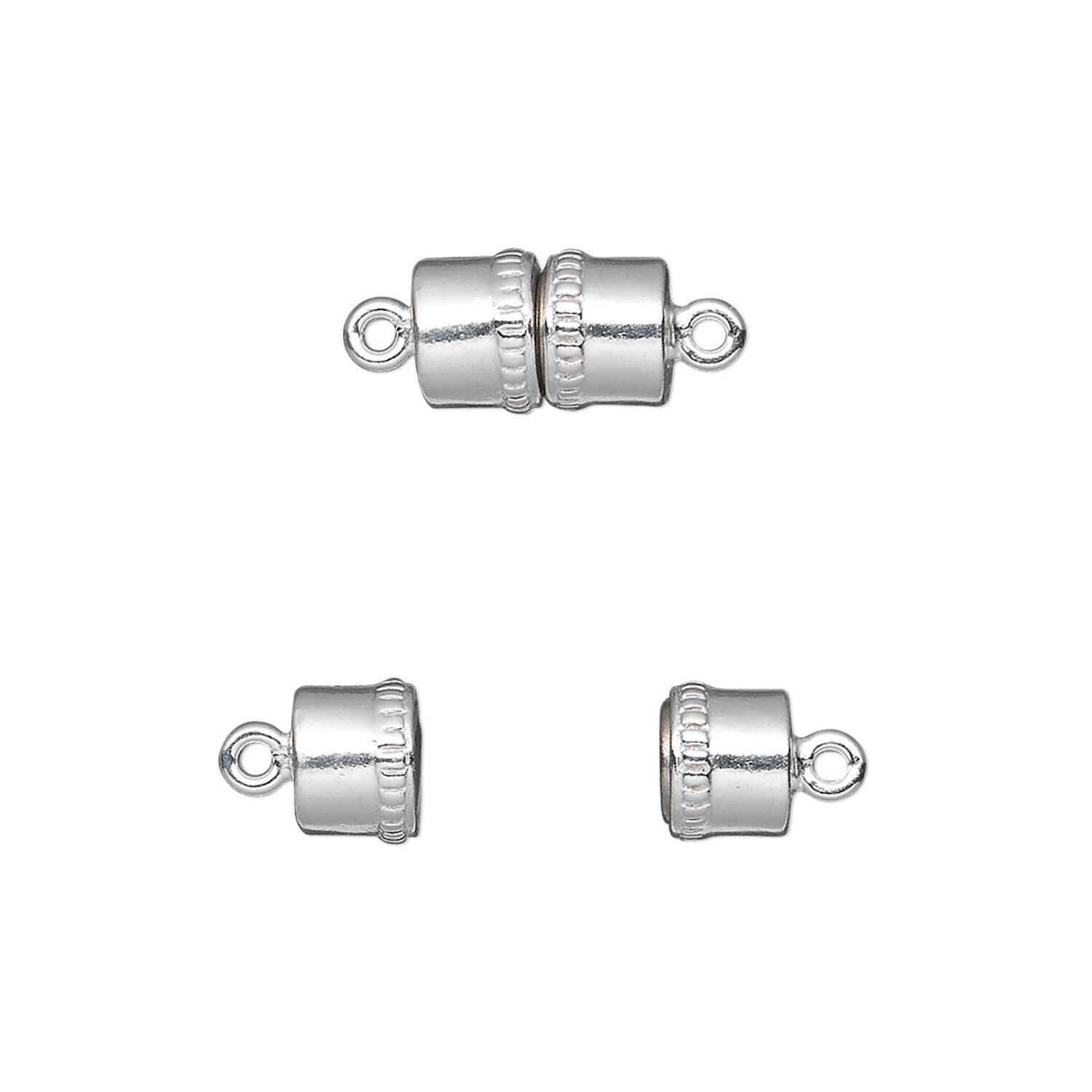 Clasp magnetic 1pkg1 sterling silver, 10x7mm round tube, 1-strand