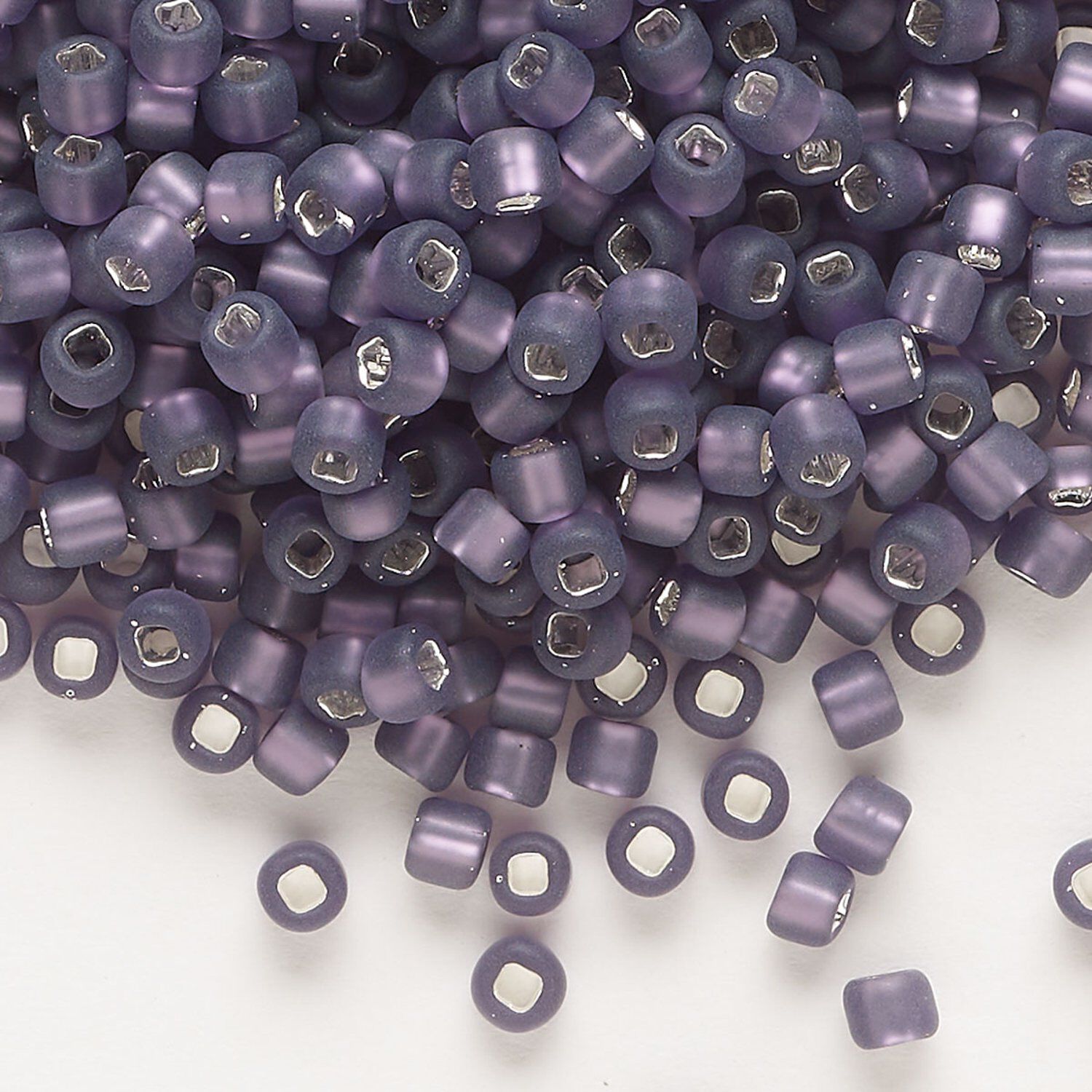 Seed bead, Dyna-Mites™, glass, silver-lined translucent matte amethyst purple, #6 round with square hole. Sold per 1/2 kilogram pkg.