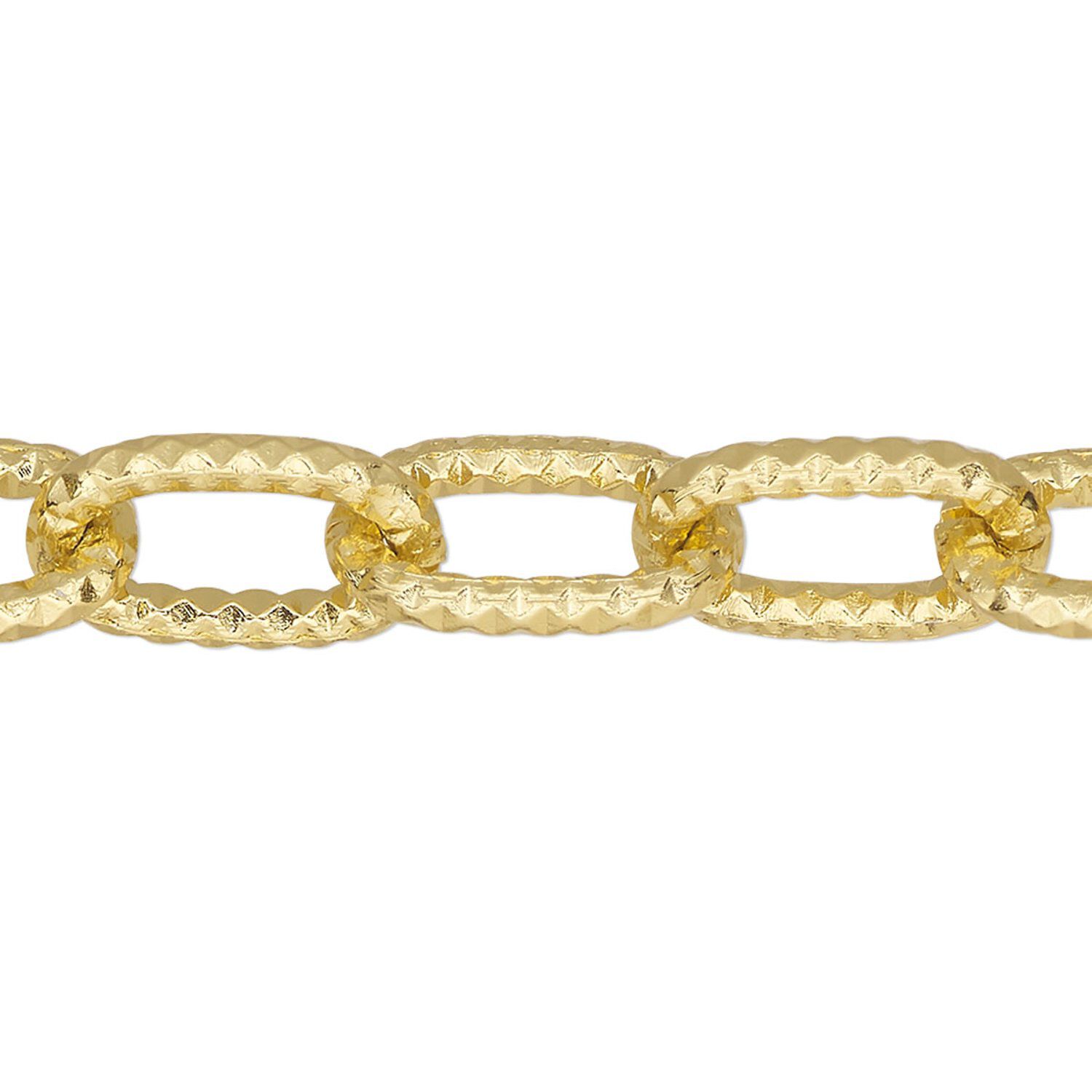 Chain, anodized aluminum, gold, 10.3mm textured cable. Sold per pkg of 5 feet.