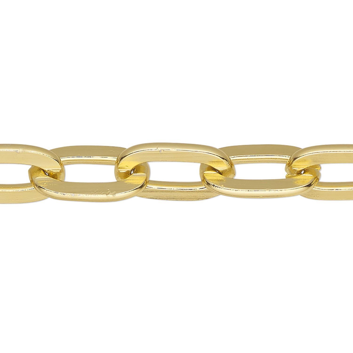 Chain 1pkg1 cable, 9mm flat, aluminum / anodized gold 5 foot unfinished