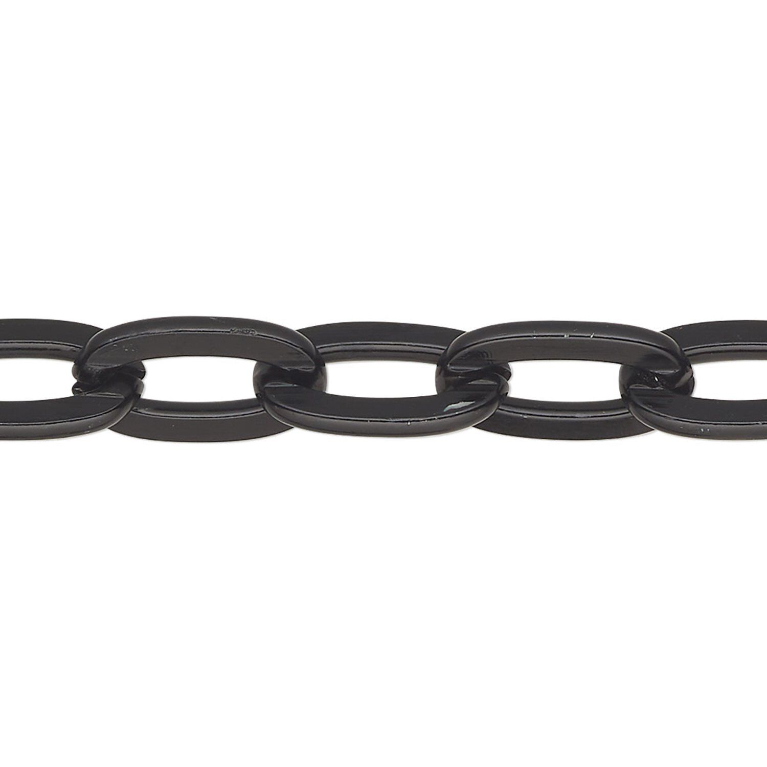 Chain, anodized aluminum, black, 9mm flat cable. Sold per pkg of 25 feet.