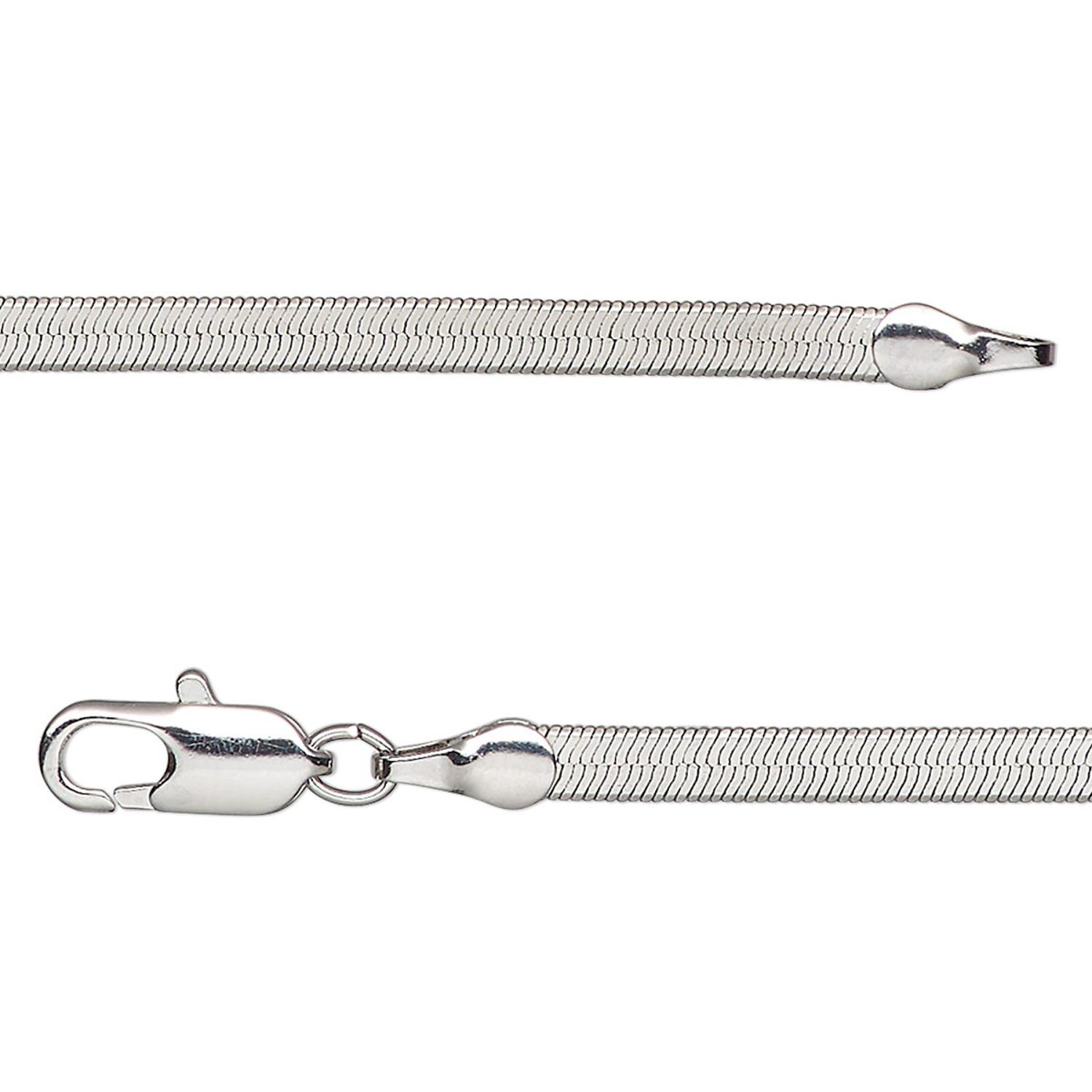 Chain, silver-plated brass, 3mm herringbone, 24 inches with lobster claw clasp. Sold individually.