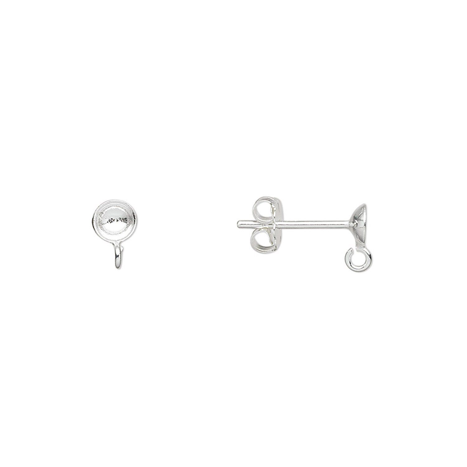 Earstud 1pkg10 sterling silver, 4mm cup / open loop / 4-6mm round glue-in setting / earnuts, 5 pair