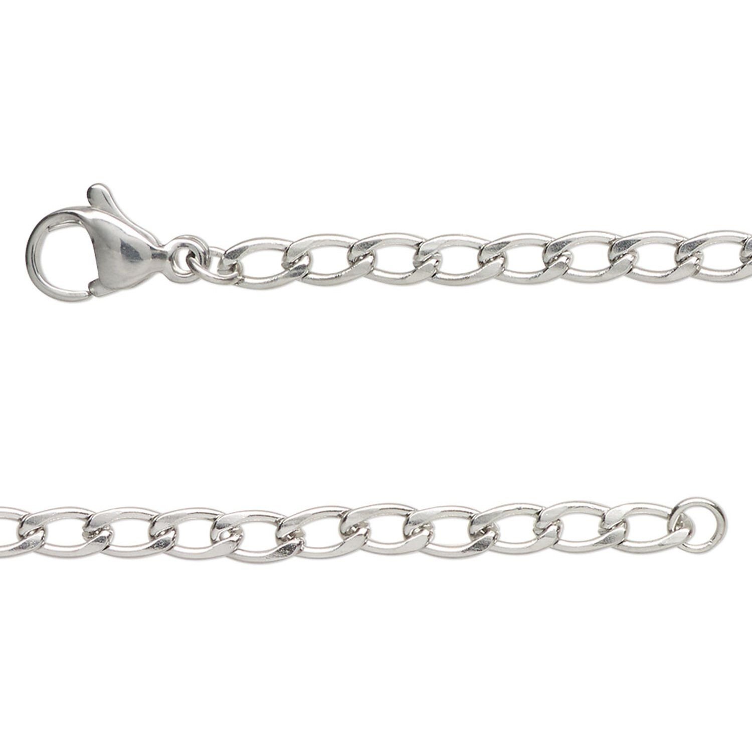 Chain, stainless steel, 3mm flat curb, 18 inches with lobster claw clasp Sold per pkg of 2.