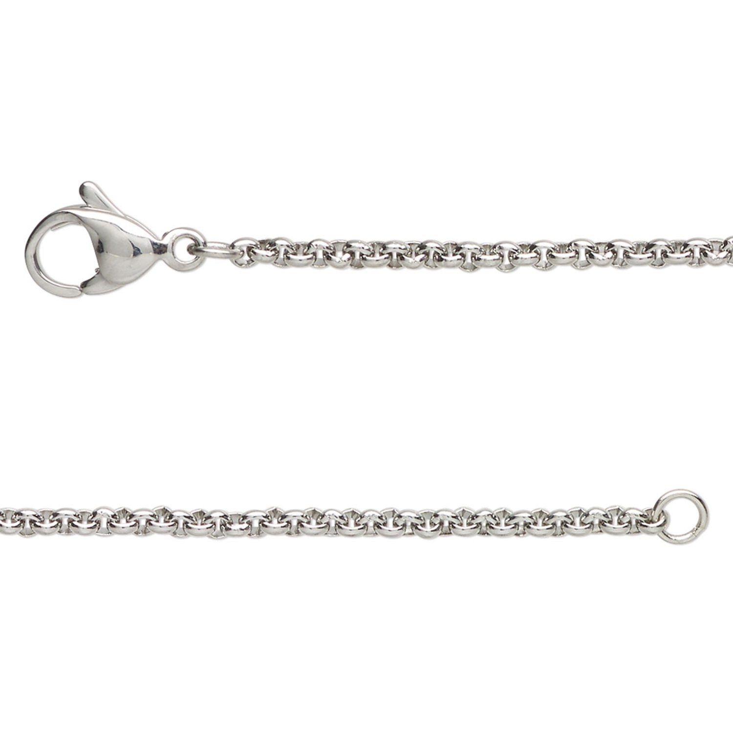 Chain, stainless steel, 2mm rolo, 16 inches with lobster claw clasp. Sold individually.