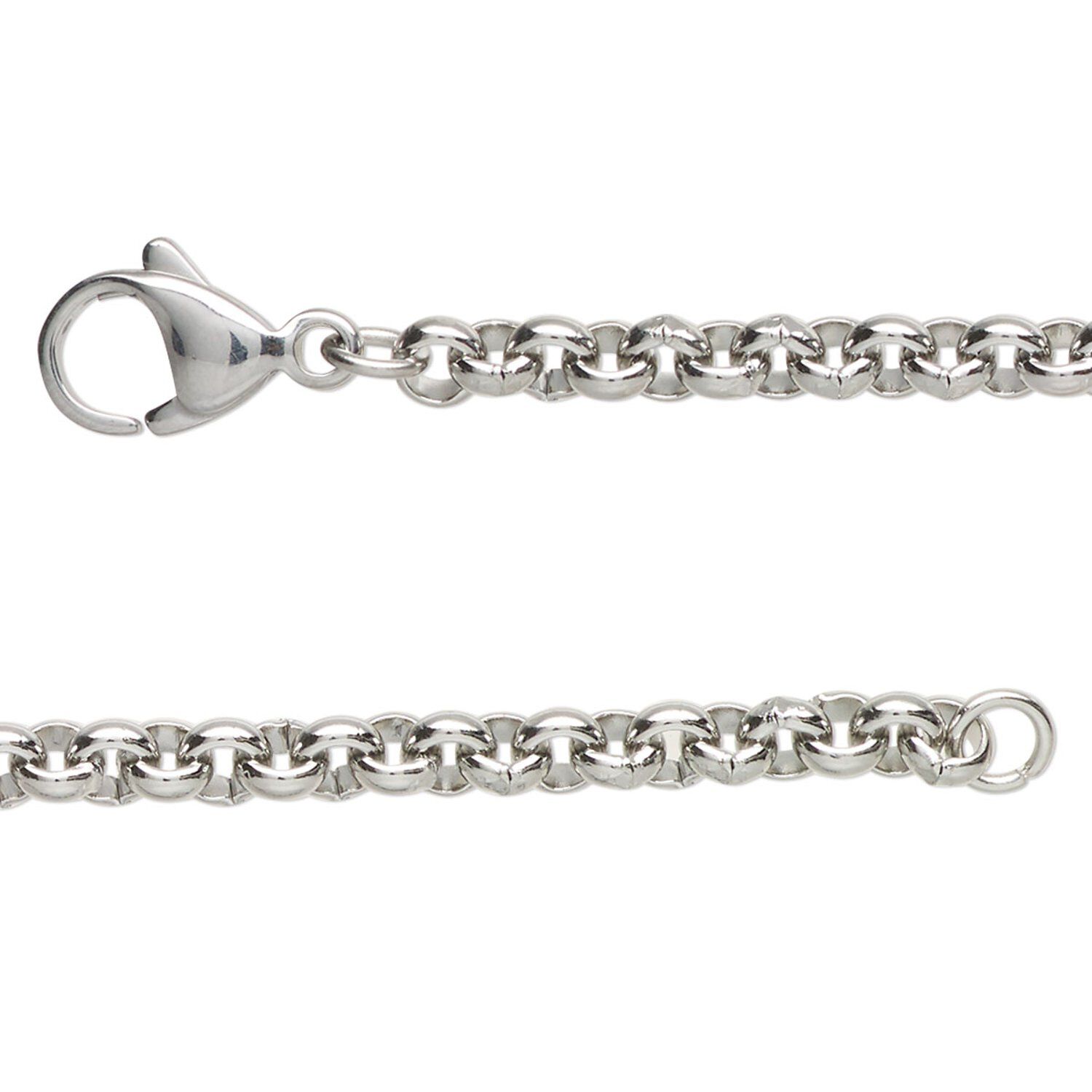 Chain, stainless steel, 4mm rolo, 18 inches with lobster claw clasp. Sold individually.