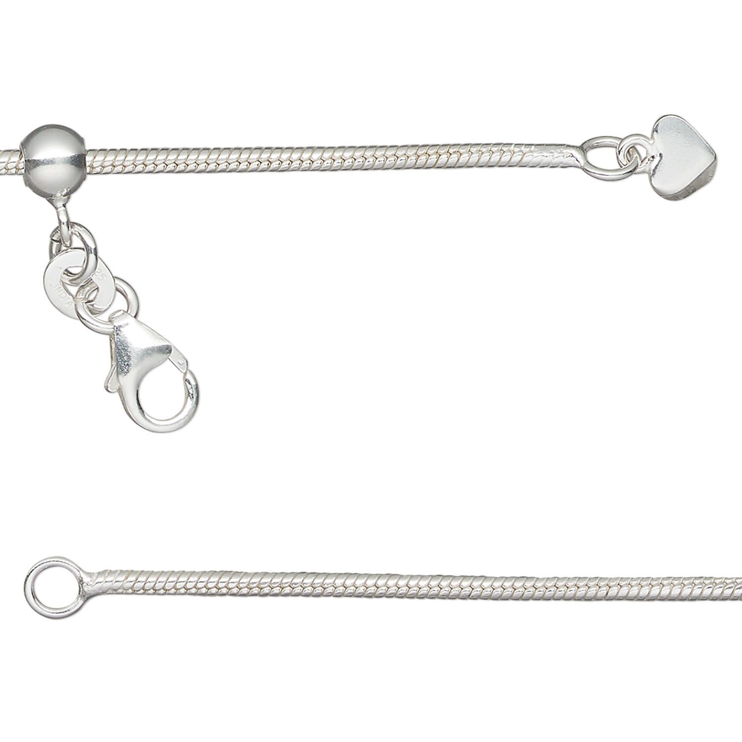 Chain 1pkg1 Gossamer™, sterling silver and silicone, 1.6mm snake, 16 to 24 inches with lobster claw clasp and 5mm adjustable slider bead.