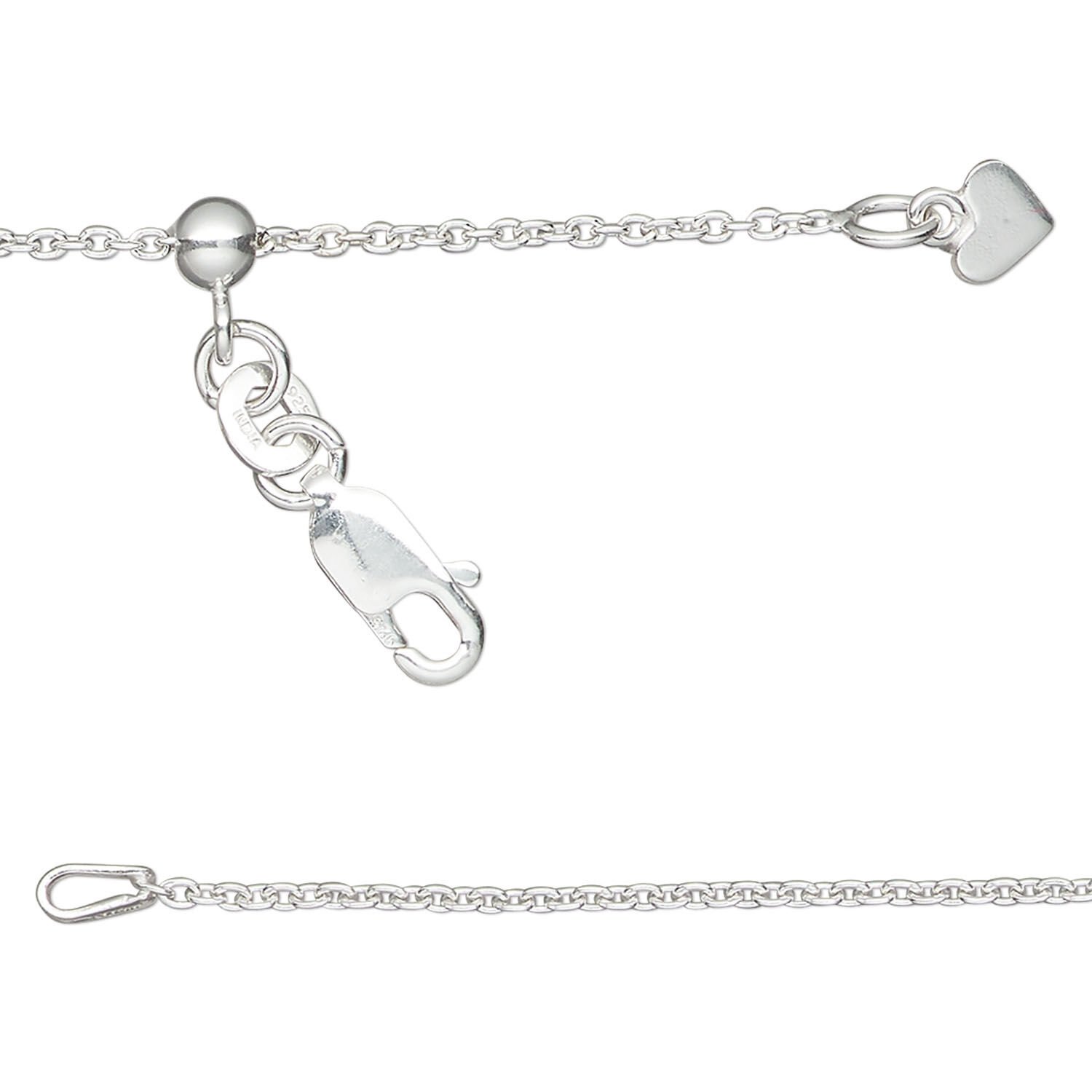 Durable and timeless, this sterling silver cable chain features a sliding bead with a silicone center for effortless adjustment from 16 to 24 inches. The cable links and bead detail make it a versatile base for pendants or layering.