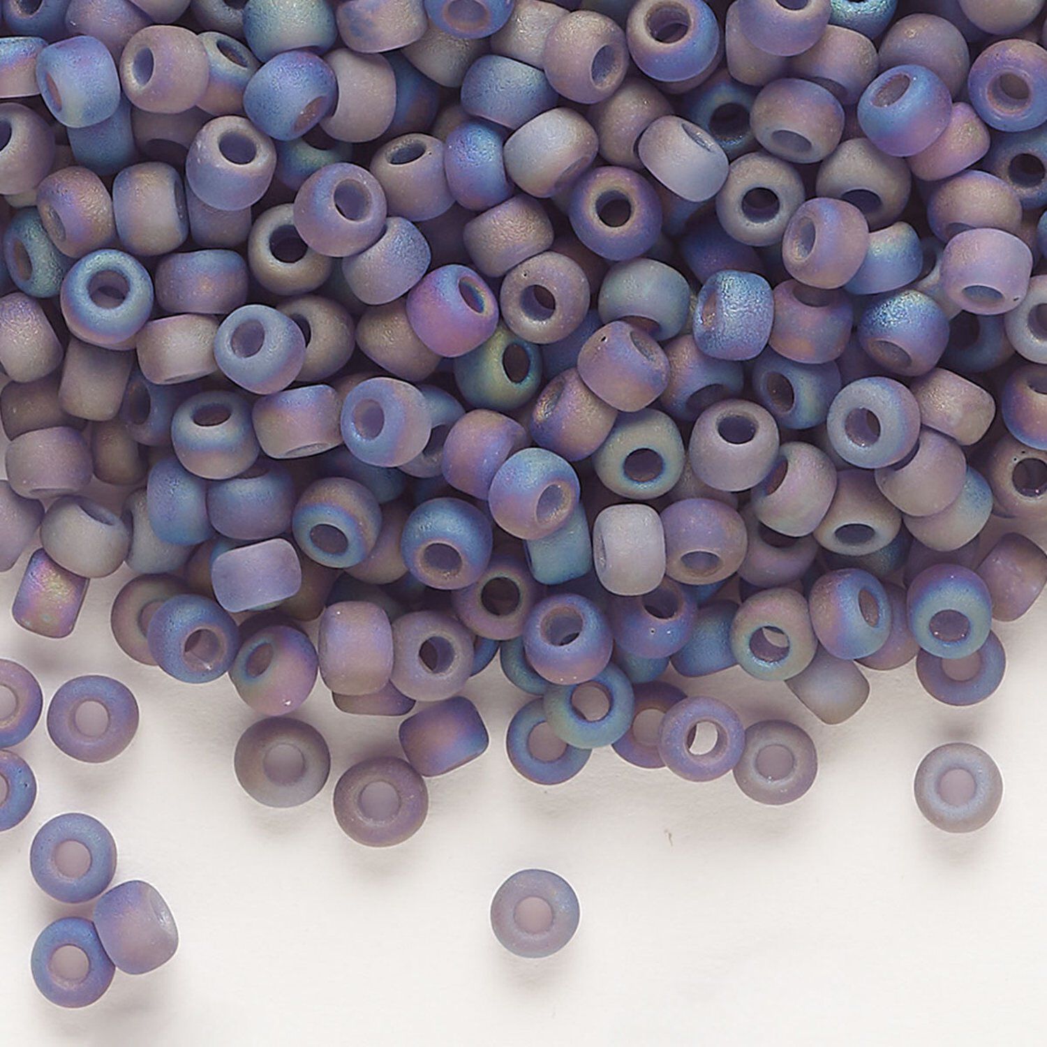Seed bead, Dyna-Mites™, glass, transparent frosted rainbow purple, #6 round. Sold per 1/2 kilogram pkg.