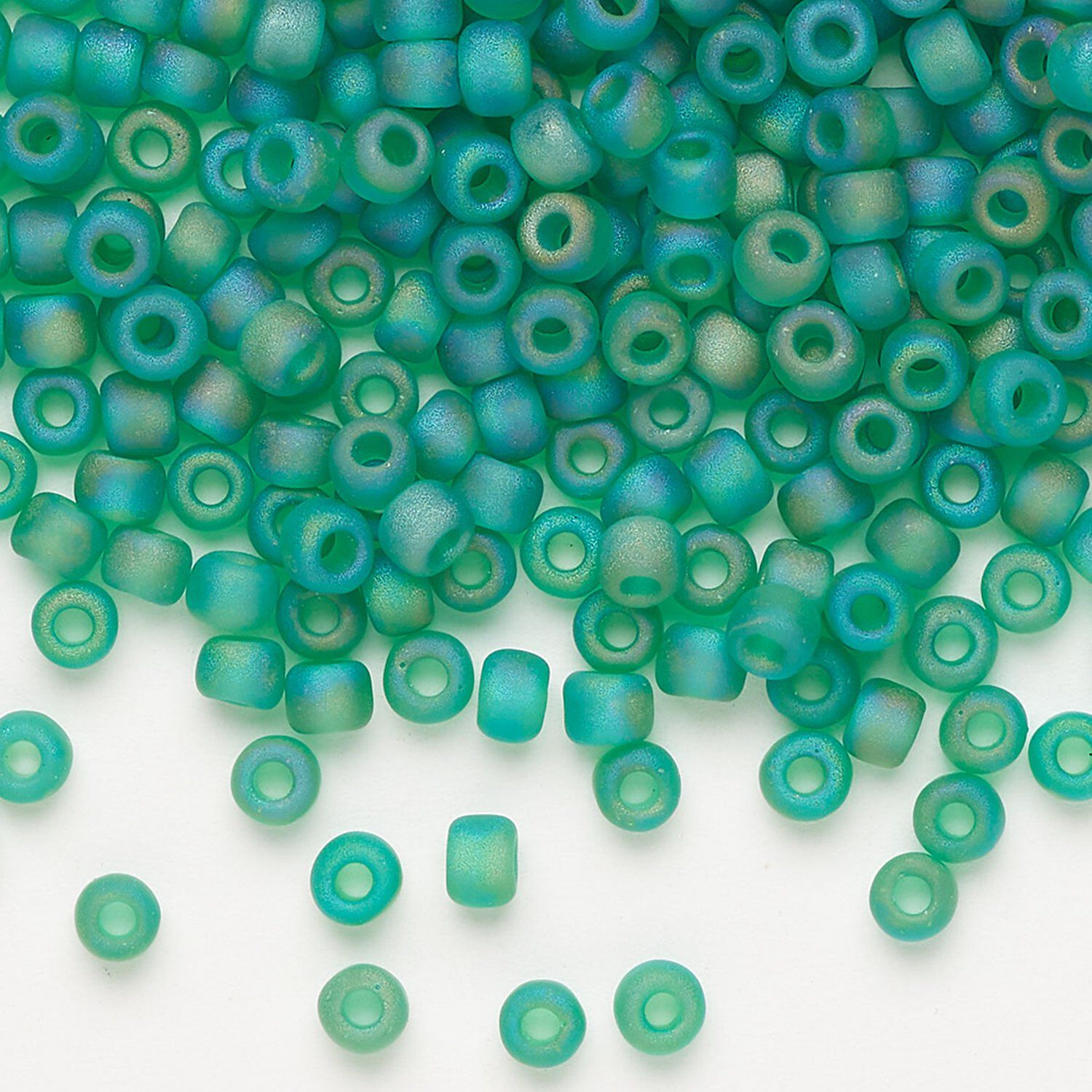 Seed bead, Dyna-Mites™, glass, transparent frosted rainbow jade green, #6 round. Sold per 1/2 kilogram pkg.