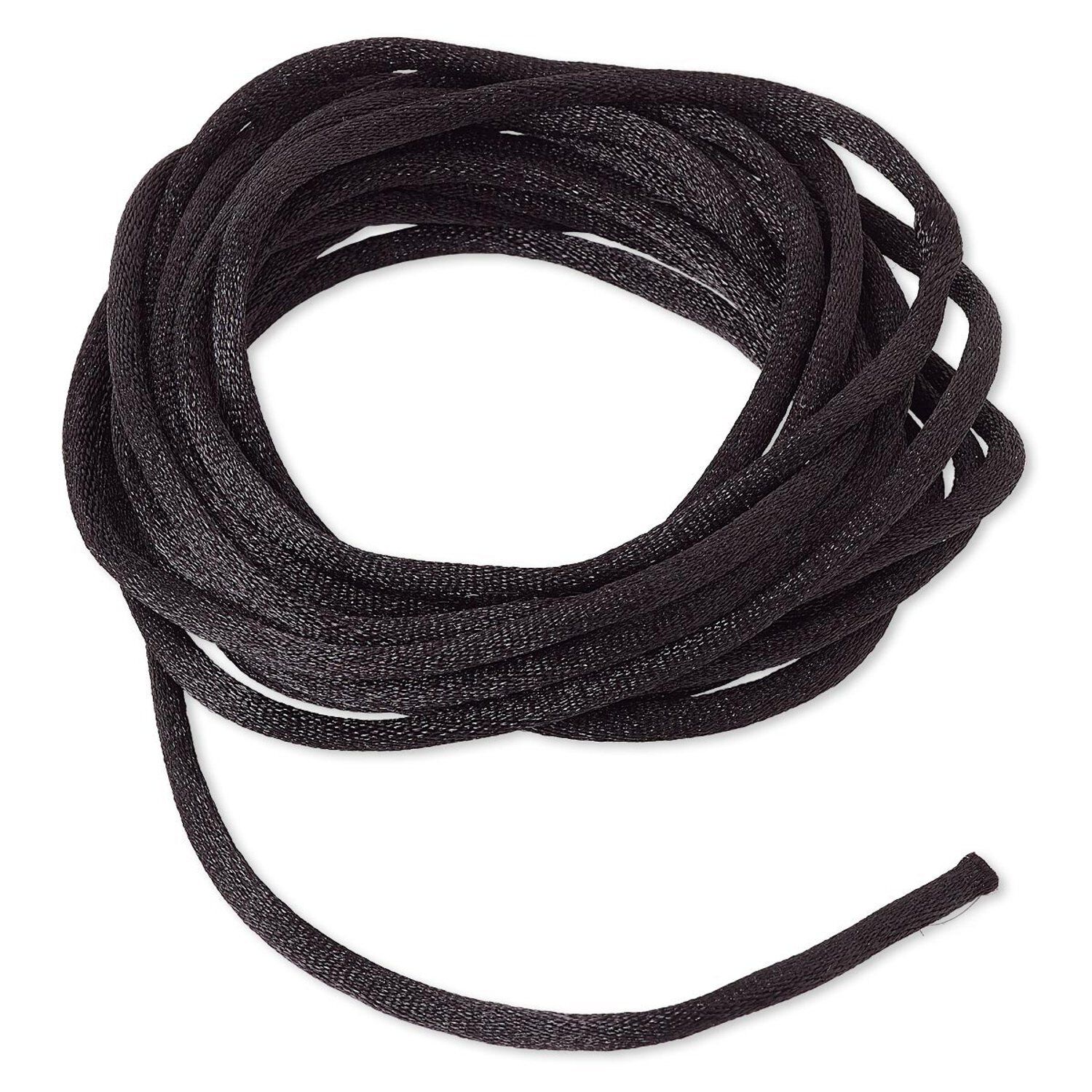 Cord, Satinique™, satin, black, 4mm large. Sold per pkg of 10 feet.