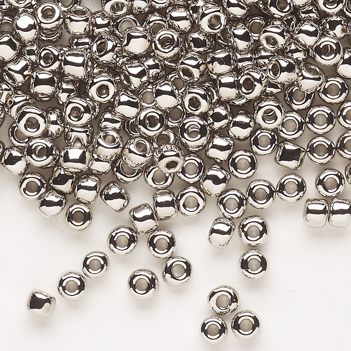 Seed bead, Dyna-Mites™, glass, opaque nickel-finished, #6 round. Sold per 40-gram pkg.
