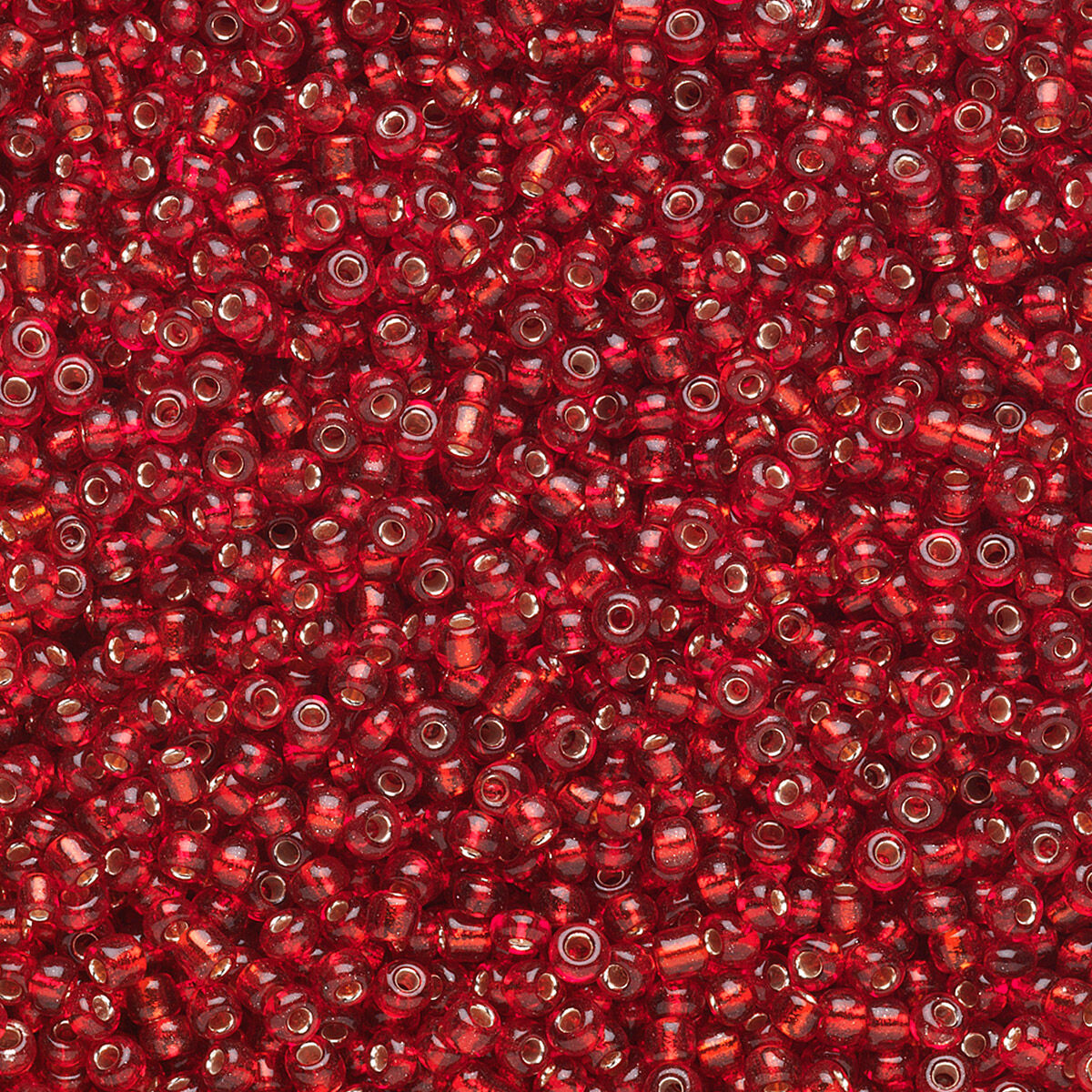 Seed bead, Ming Tree™, glass, pkg/1 pound, #11 round, transparent silver-lined ruby red.