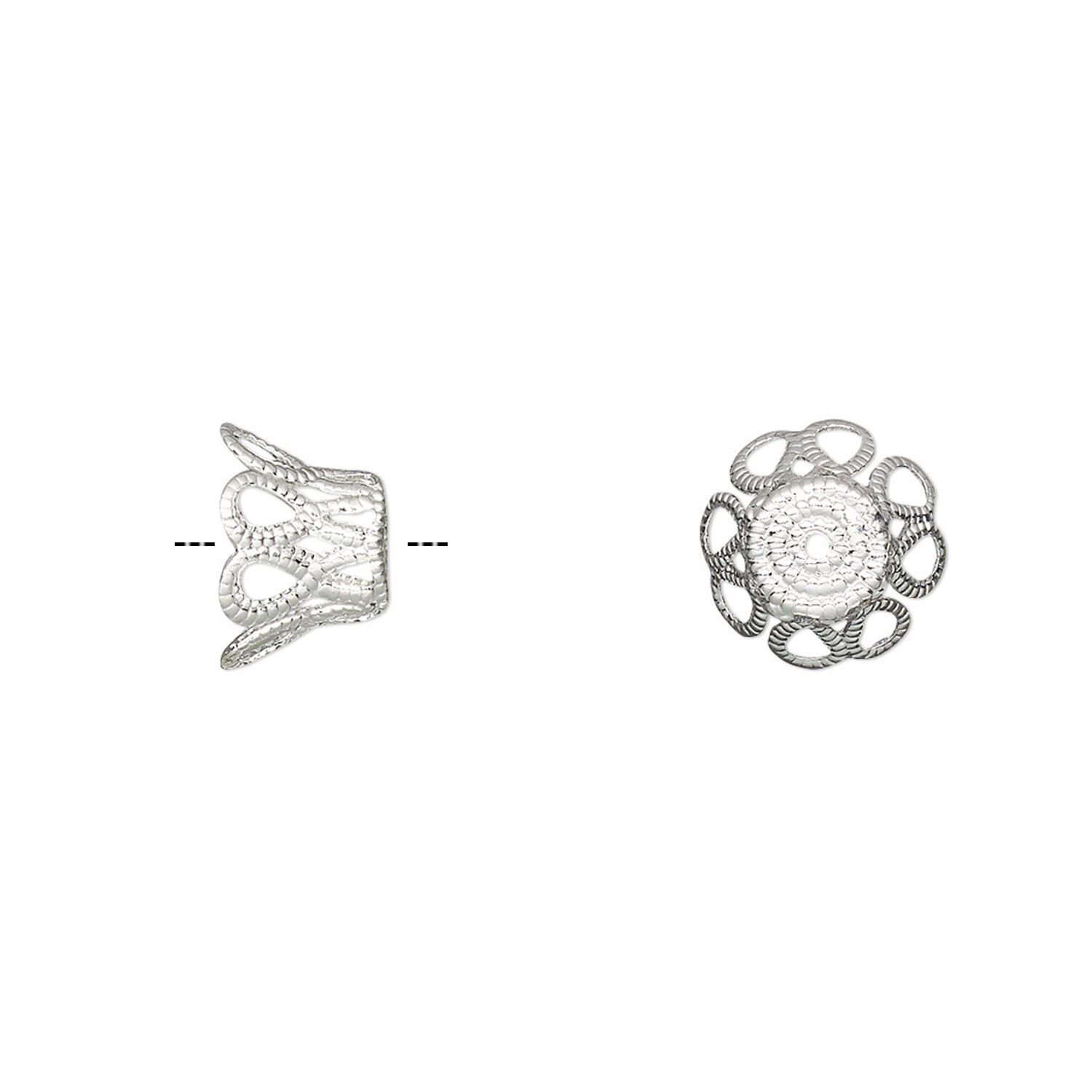 Bead cap, silver-plated brass, 9x6mm basket, fits 9-11mm bead. Sold per pkg of 100.
