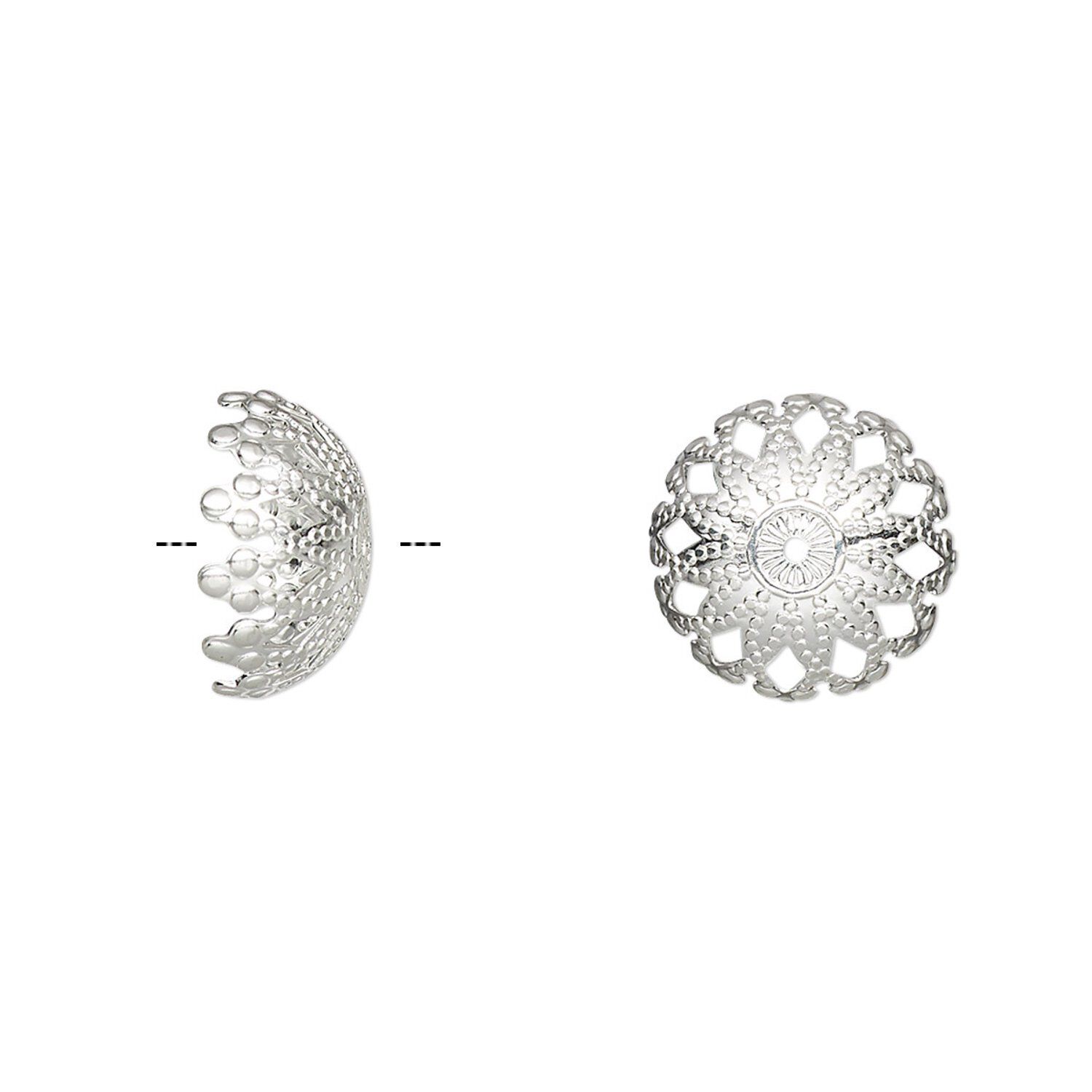 Bead cap, silver-plated brass, 12x6mm filigree dome, fits 12-14mm bead. Sold per pkg of 100.