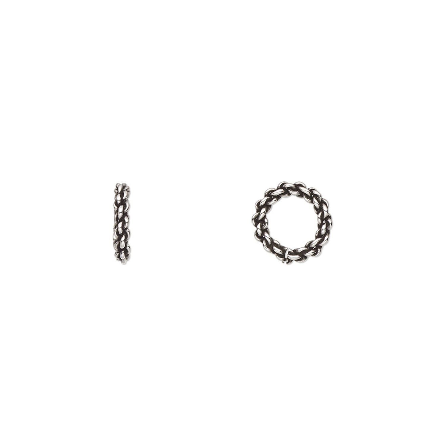 Add detail to designs using large-hole rondelle beads. Easy to use and versatile, antiqued sterling silver rondelles give personality to accessories with an interchangeable style. Wide hole makes it easy to string thick cord or multiple wires.